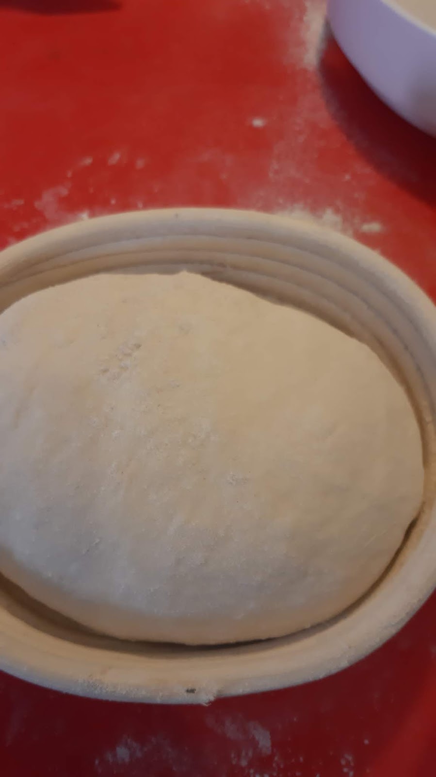 - Сложих в набрашнена кошничка за втасване на хляб. Ако нямате такава кошничка, постелете чиста кърпа в купа и набрашнете. Там ще втаса Вашето хлебче.