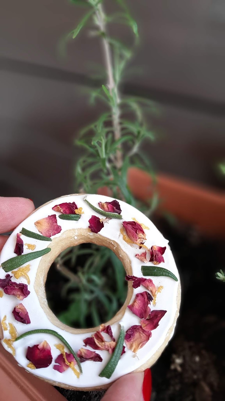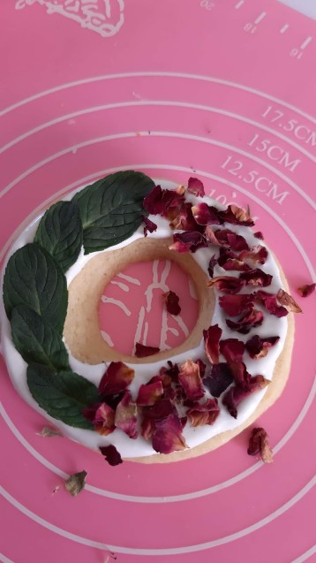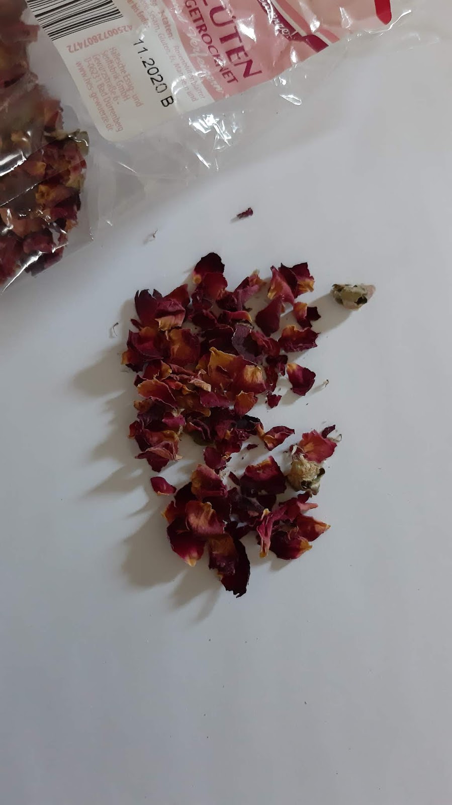 - Аз нямам в момента цъфнали рози и за целта използвам сушени листа от рози. Но със свежи също ще стане много нежно и красиво.