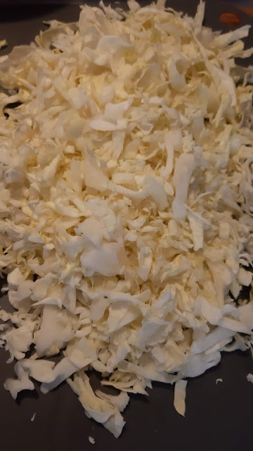 - Нарязвам зелето на тънки лентички и го намачквам с ръце, за да поомекне.