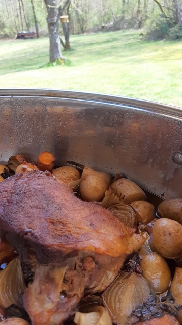 Здравей, Елена! Честити празници! Това е типична за Германия тенджера за печене на големи парчета месо. Нарича се Бретер. Традиционният бретер се прави от чугун. Аз, обаче преди около 7 години си купих варианта на Джейми Оливър. Това е голяма тенджера, която събира цяла пуйка. Това давам като пример за размер.Задължително е с капак.И, да! Имам рецепти в блога за агнешко месо с пресен лук, спанак, зелении и каквото поискаш. Тази година реших да разчупя традицията, съобразено с Католическия Великден, който беше една седмица преди Православния. Поздрави от Хунсрюк