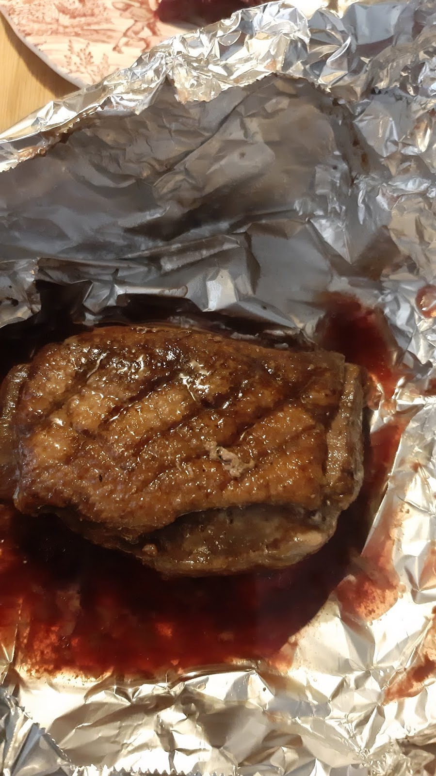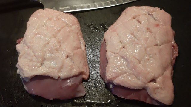 - С това рязане на кожата се дава възможност на патешката мазнина да излезе и да се получи хрупкава коричка от кожата.
