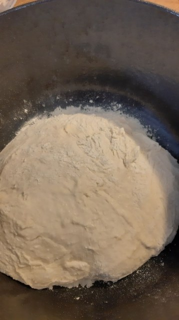 - С помощта на двете шпатули премествам меката топка тесто в тенджерата, но със събраните краища надолу. Просто го обръщам.