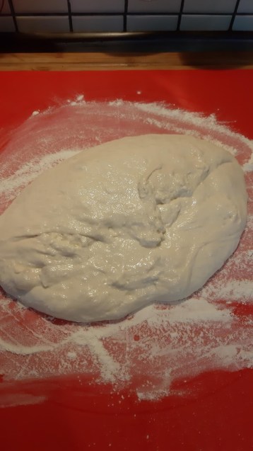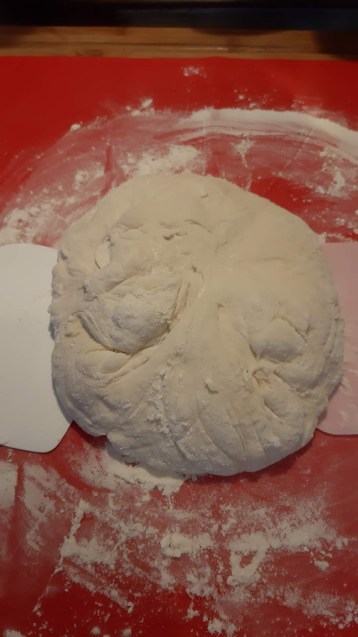 - Изсипвам тестото върху обилно набрашнена плоскост.