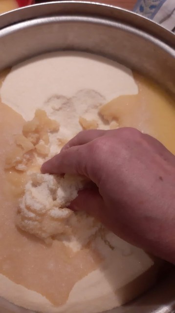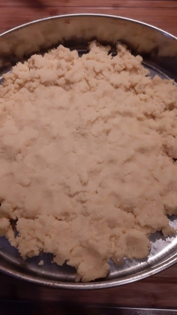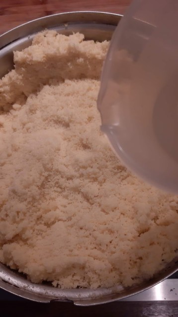 • Месенето е с ръце така, че да усещате изцяло добре ли се напоява цялото количество грис.