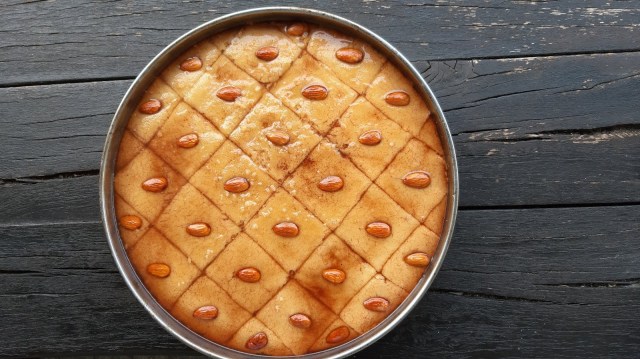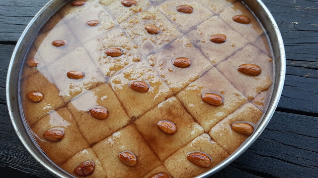 Разликата между този сладкиш и арабския Basbosa е, че тук не се използват яйца и кисело мляко.