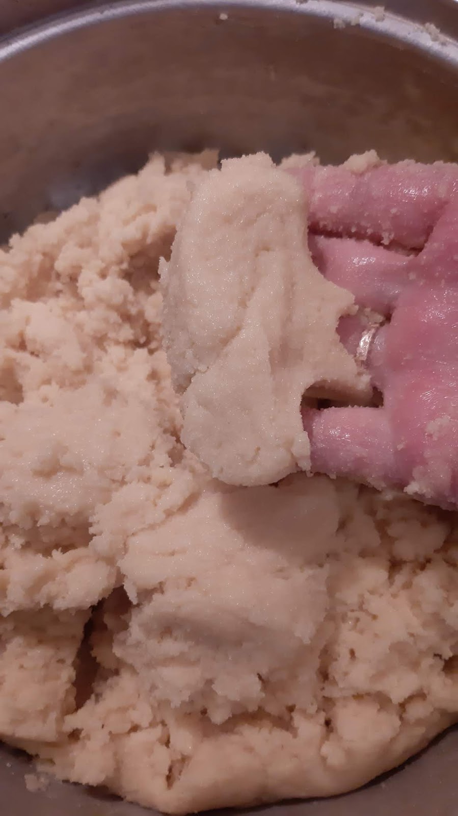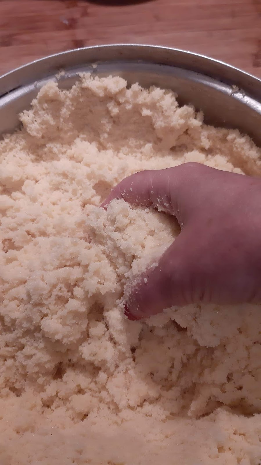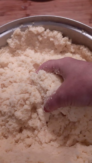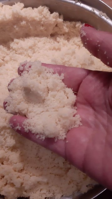 • Получава се тесто, което като вземете и стиснете, не се разпада.