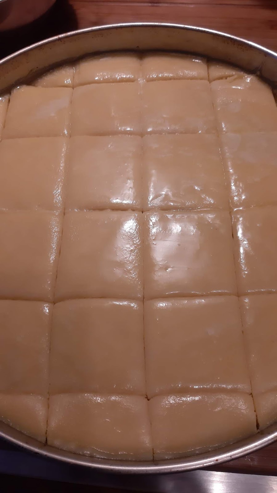 • С остър нож нарязвам квадрати като започвам първо от едната страна.