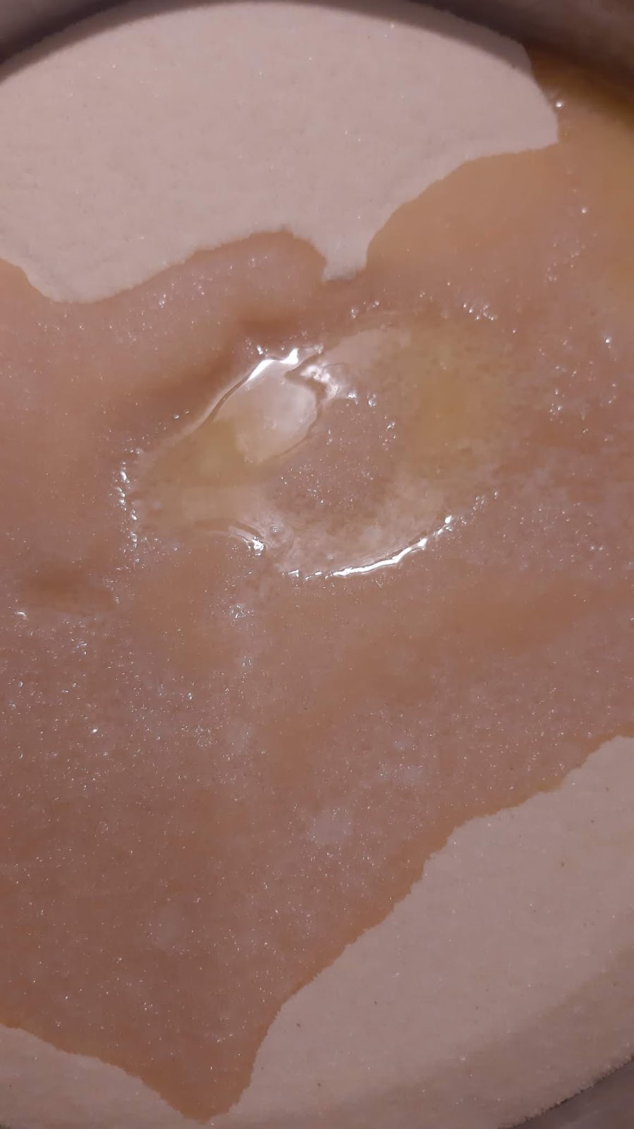 • В началото сиропът попива много бързо, чак цвърчи, но после започва да остава отгоре и му е нужно време.