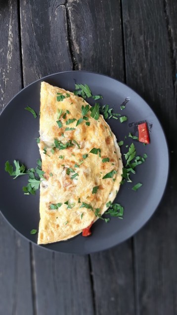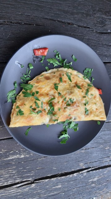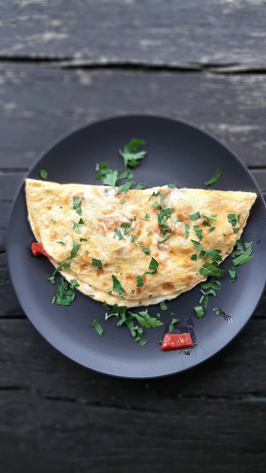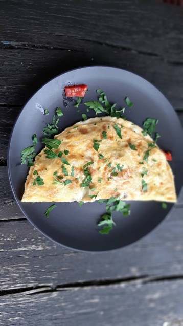 - Така похлупения омлет, декорирам с магданоз или пък настърган кашкавал.