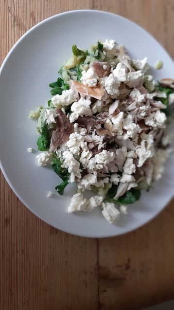 - Към готовия и овкусен със сол и черен пипер стампот, добавям почистената, измита и подсушена фелдсалата. Много често тя се продава дори готова за употреба и не е нужно да се мие.