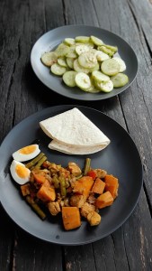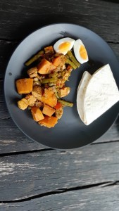 - Сервирам ястието топло, заедно с роти питка и нарязано на четвъртинки яйце.