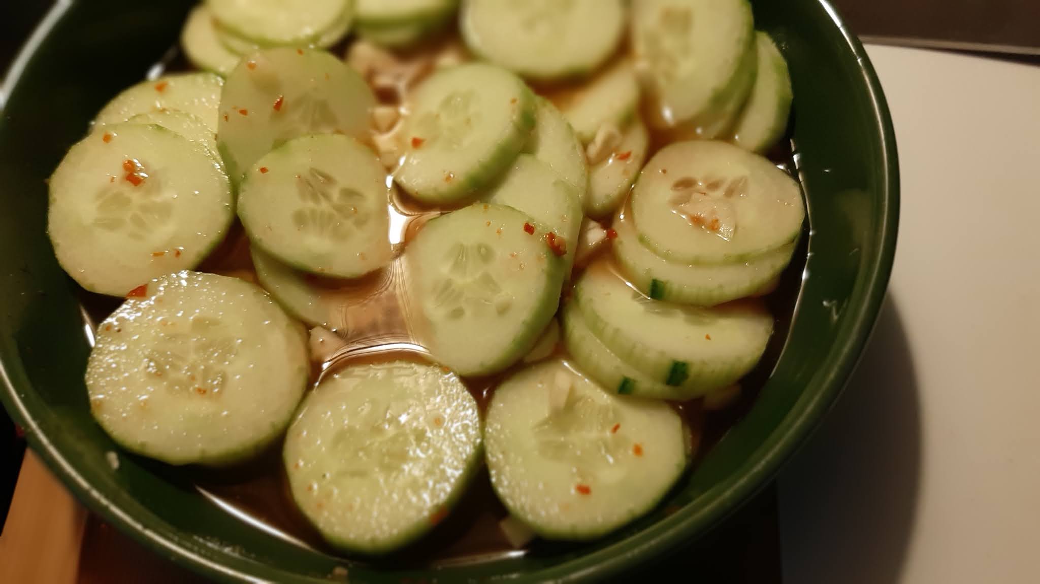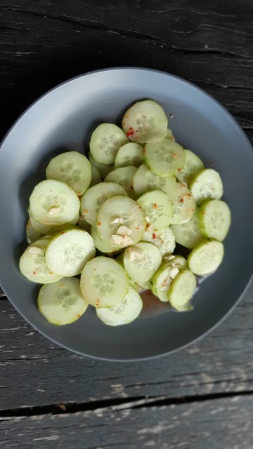 - Залях краставиците с дресинга и оставих за още миимум половин час да се накиснат, като разбърквах от време на време.