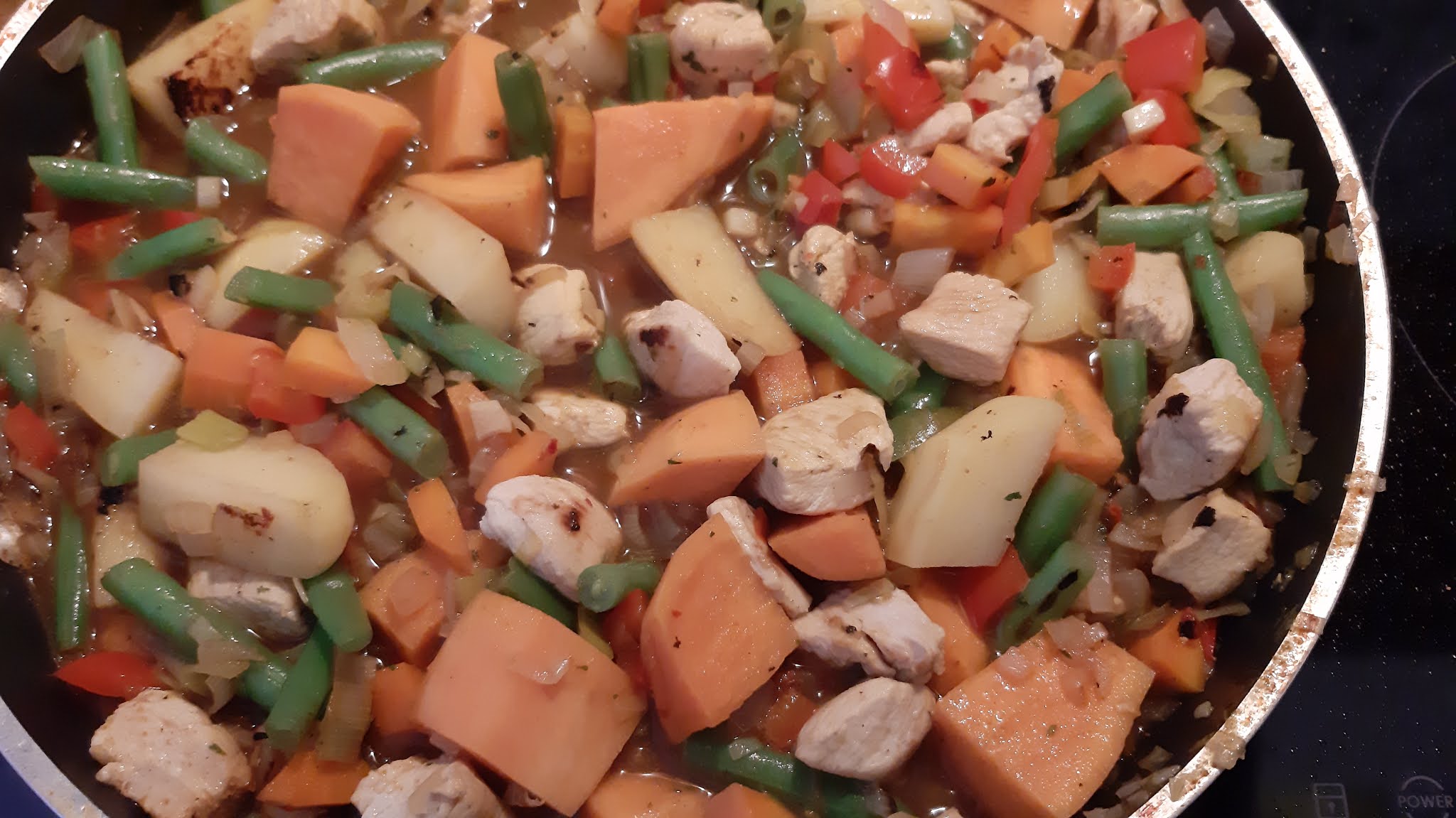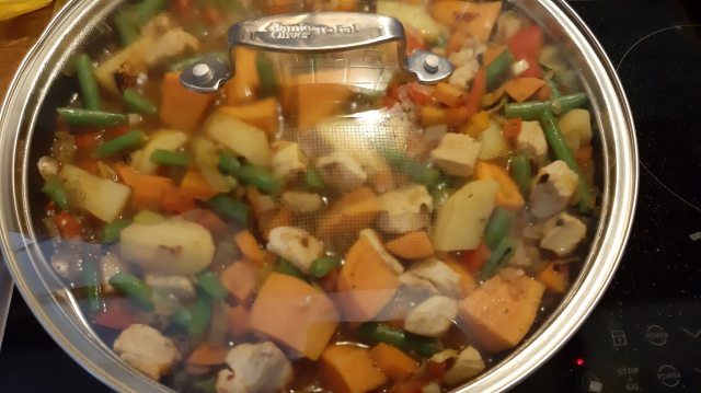 - Задушавам за около 20 минути на много ниска степен на котлона или до пълна готовност на зеленчуците.