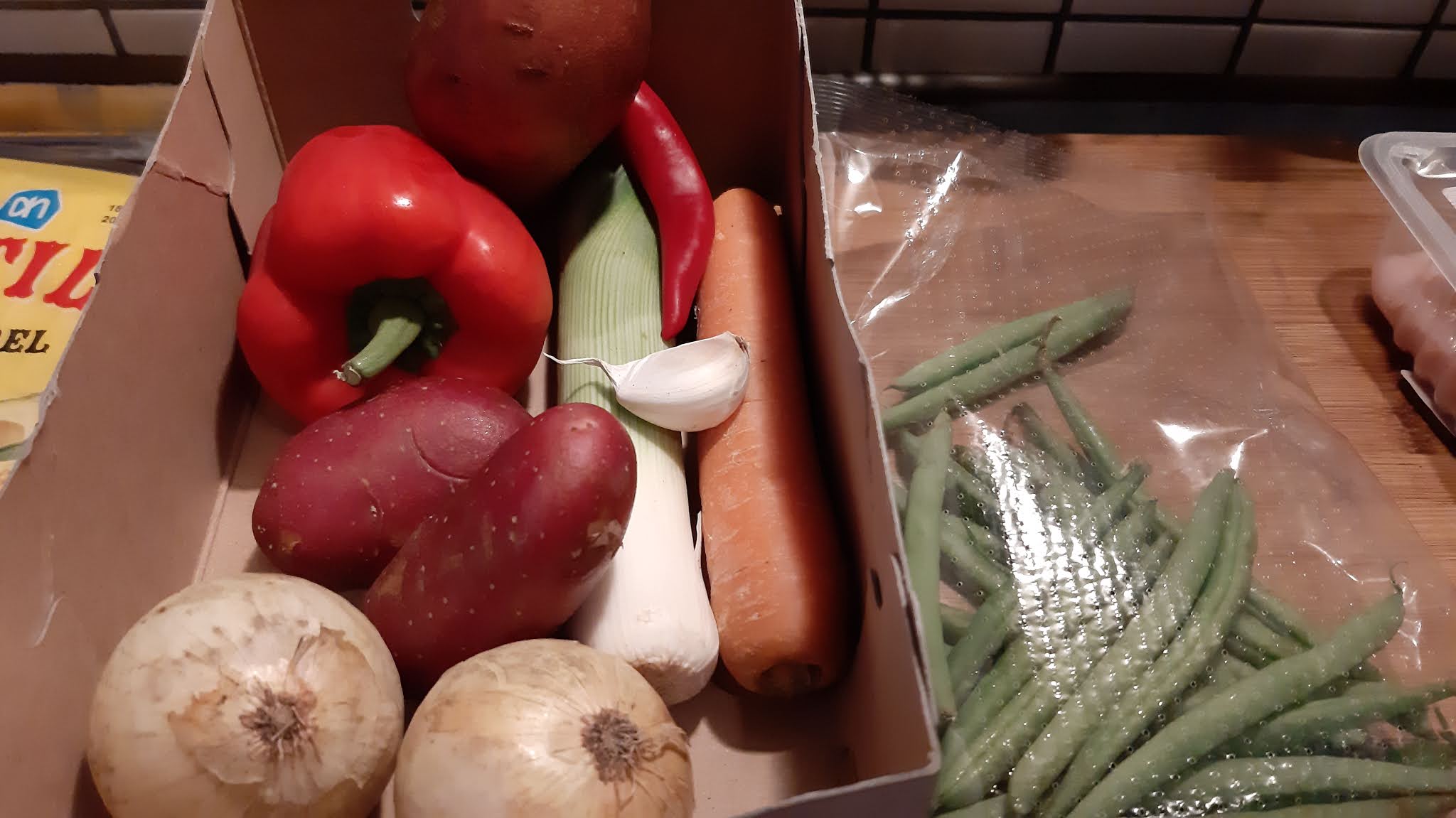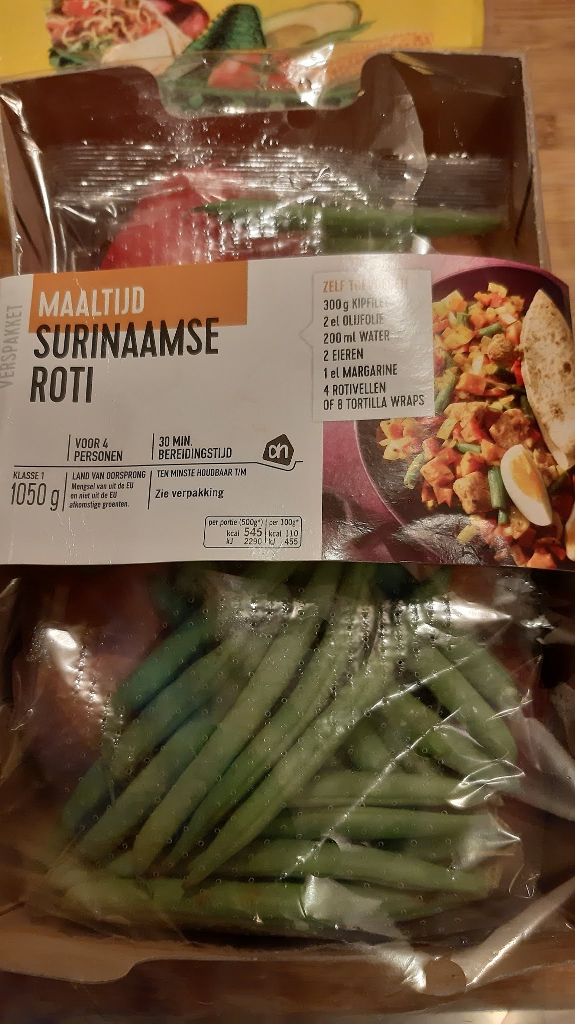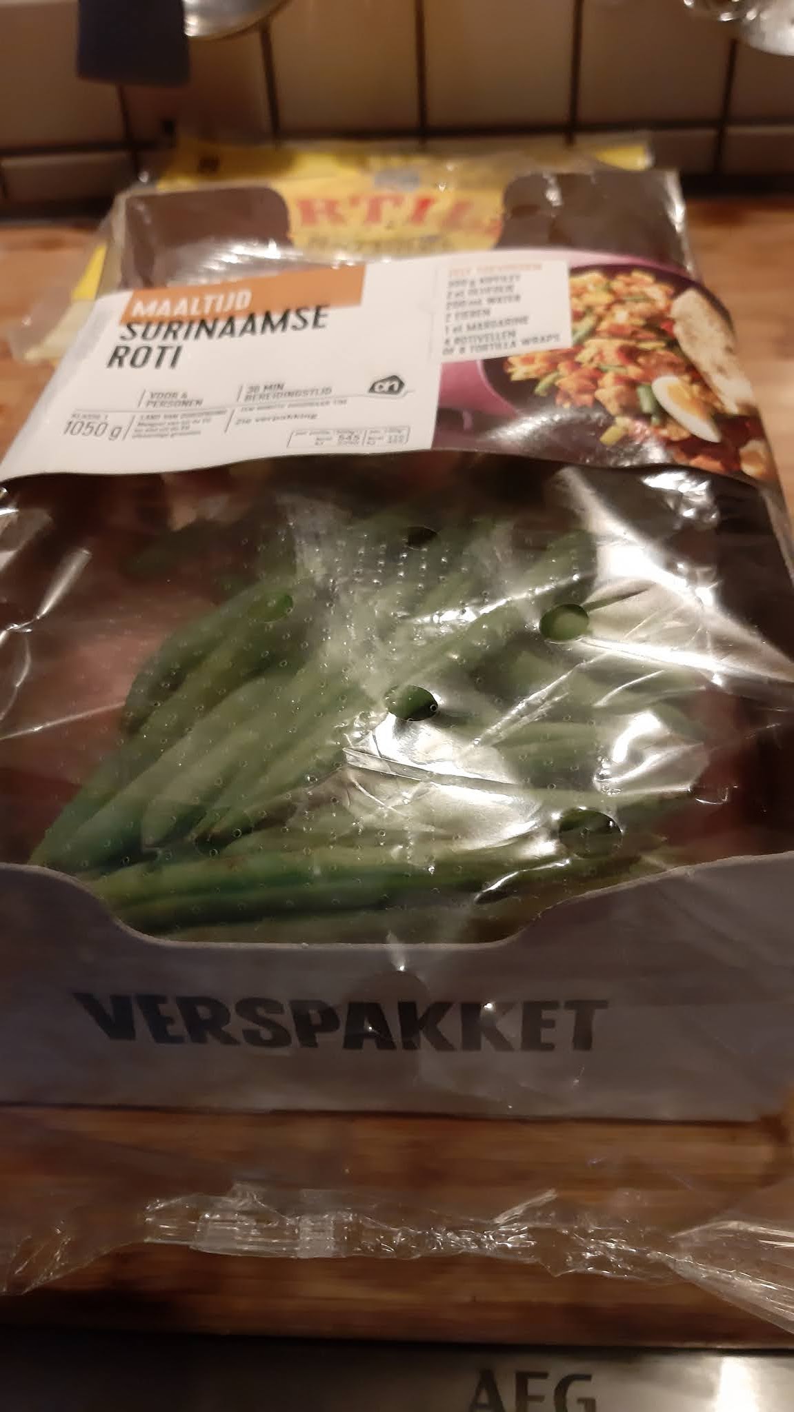 В Амстердам си харесах Albert Heijn, верига супермаркети (не е дискаунт) с над 100 годишна история. В него има щанд за готово пакетирани продукти с рецепти. Изкуших се и си купих един пакет за проба. Избрах нещо от суринамската кухня, защото вече бях опитала и суринамска храна на един от пазарите в Амстердам. Бях впечатлена от вкус и аромати.