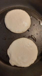 - Загрявам мазнината в тигана и започвам да сипвам от сместта.