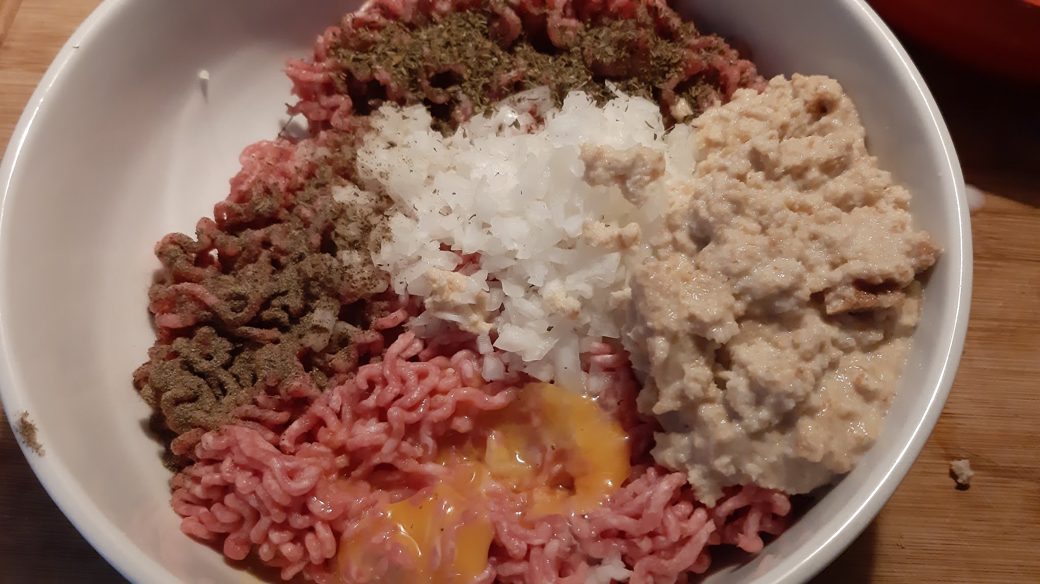 Използвайте само жълтъците, не бъркайте каймата, а нежно я омесете като, че месите хляб.!Оформете топчета, а не ги сплесквайте!
