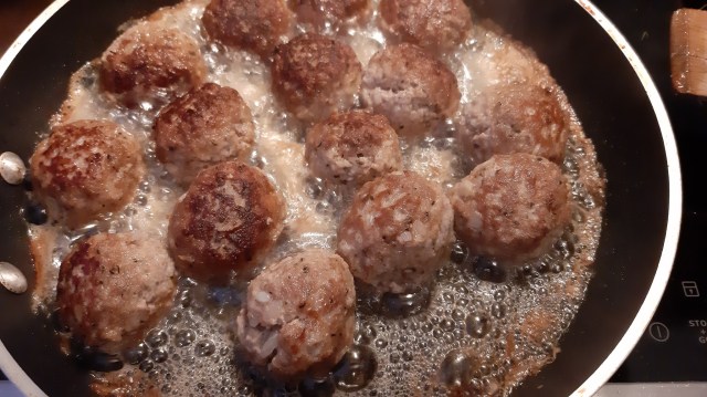Приготвените кюфтета внимателно спускаме в възврялото прясно масло в тиганя да се опържат от едната страна, тогава чак обръщаме да се зачервят и от другата и ги вадим в суа, леко затоплена чиния.