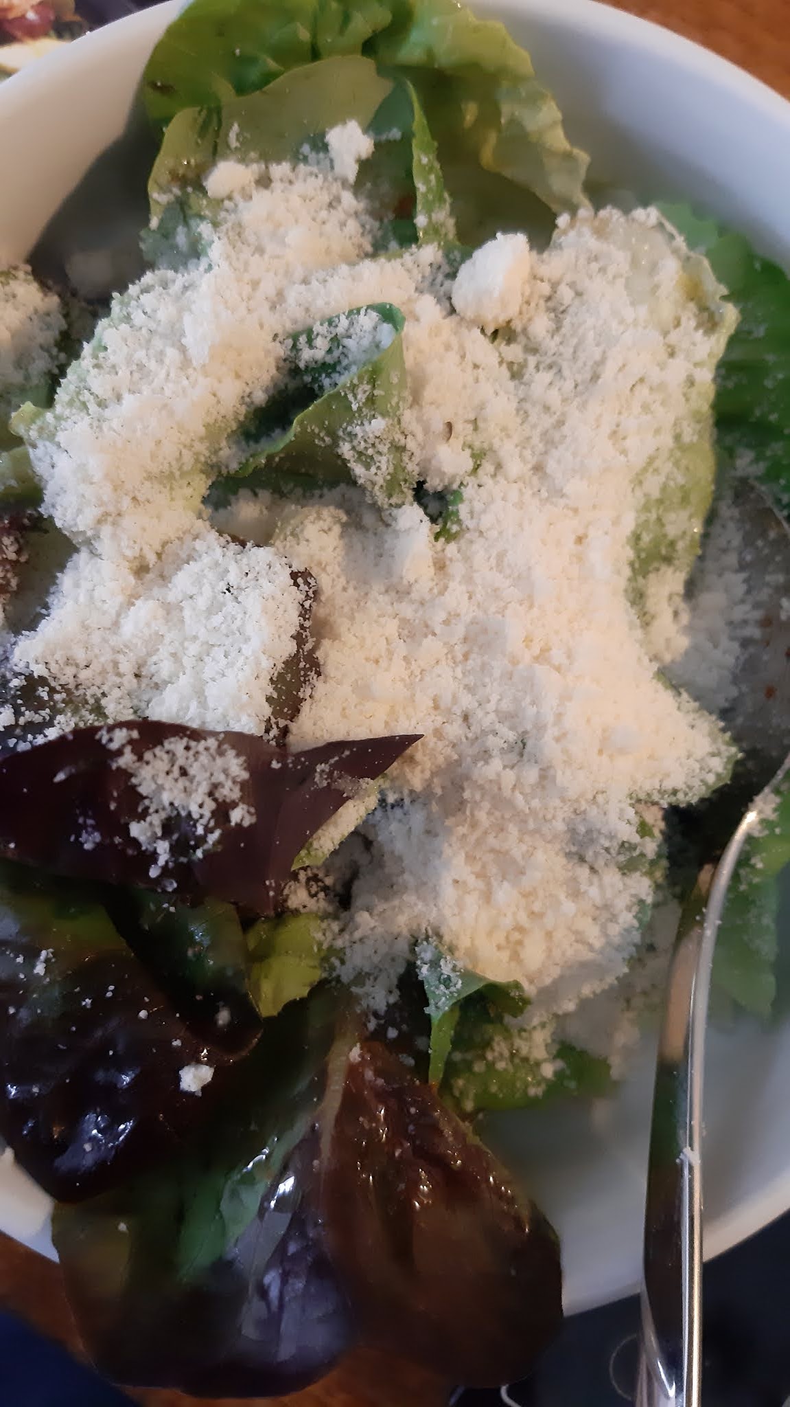 - Най-отгоре накъсвам листенца от прясна мащерка. Ако е нужно подправям допълнително със сол и черен пипер, както и още пармезан.