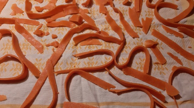 - Развивам парчетата върху чиста кухненска кърпа и оставям за кратко да изсъхнат.
