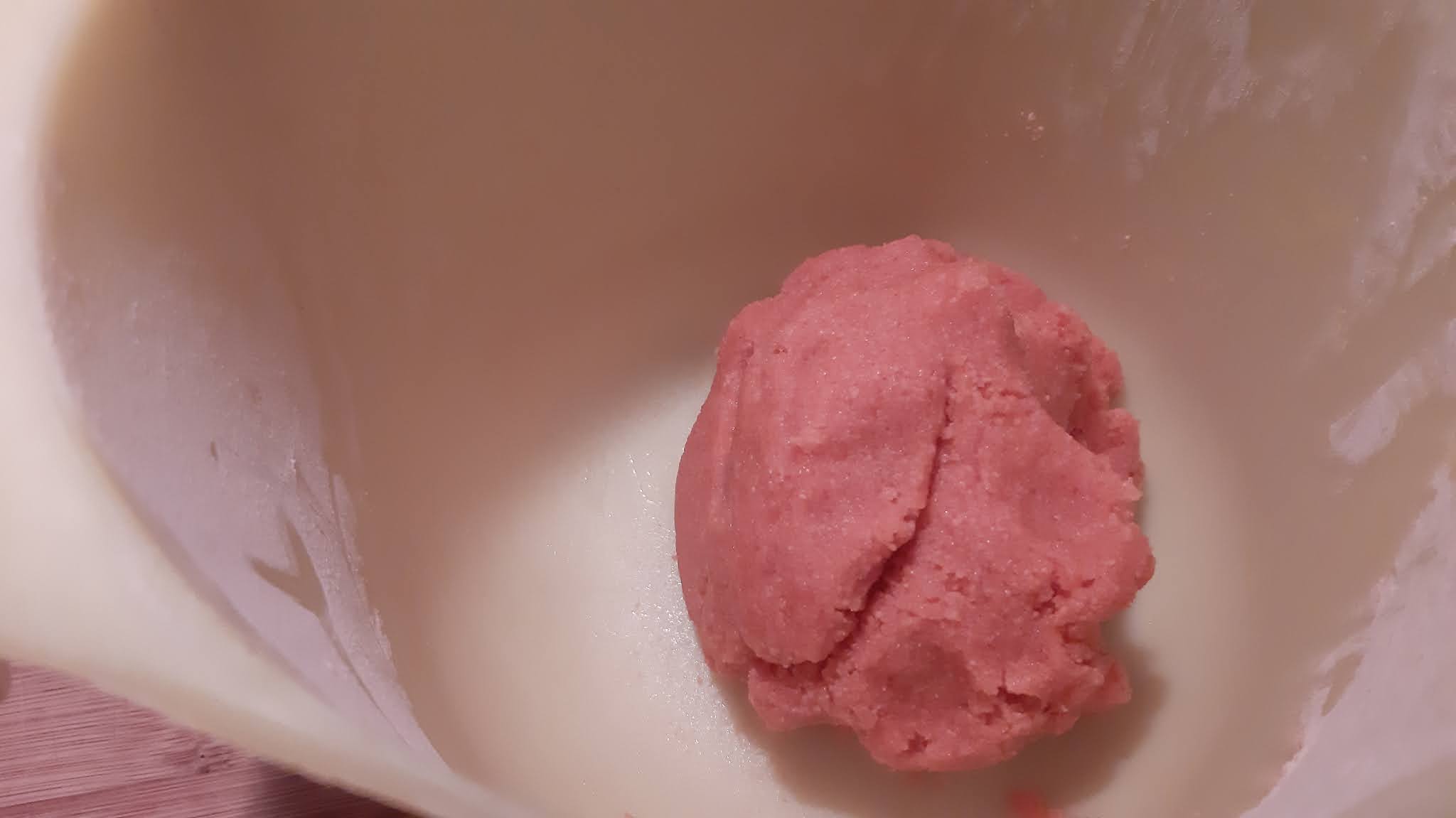 - Омесих всичко на ръка. Получава се твърдо тесто, което покрих с фолио за свежо съхранение и оставих за около 30 минути да си почине.
