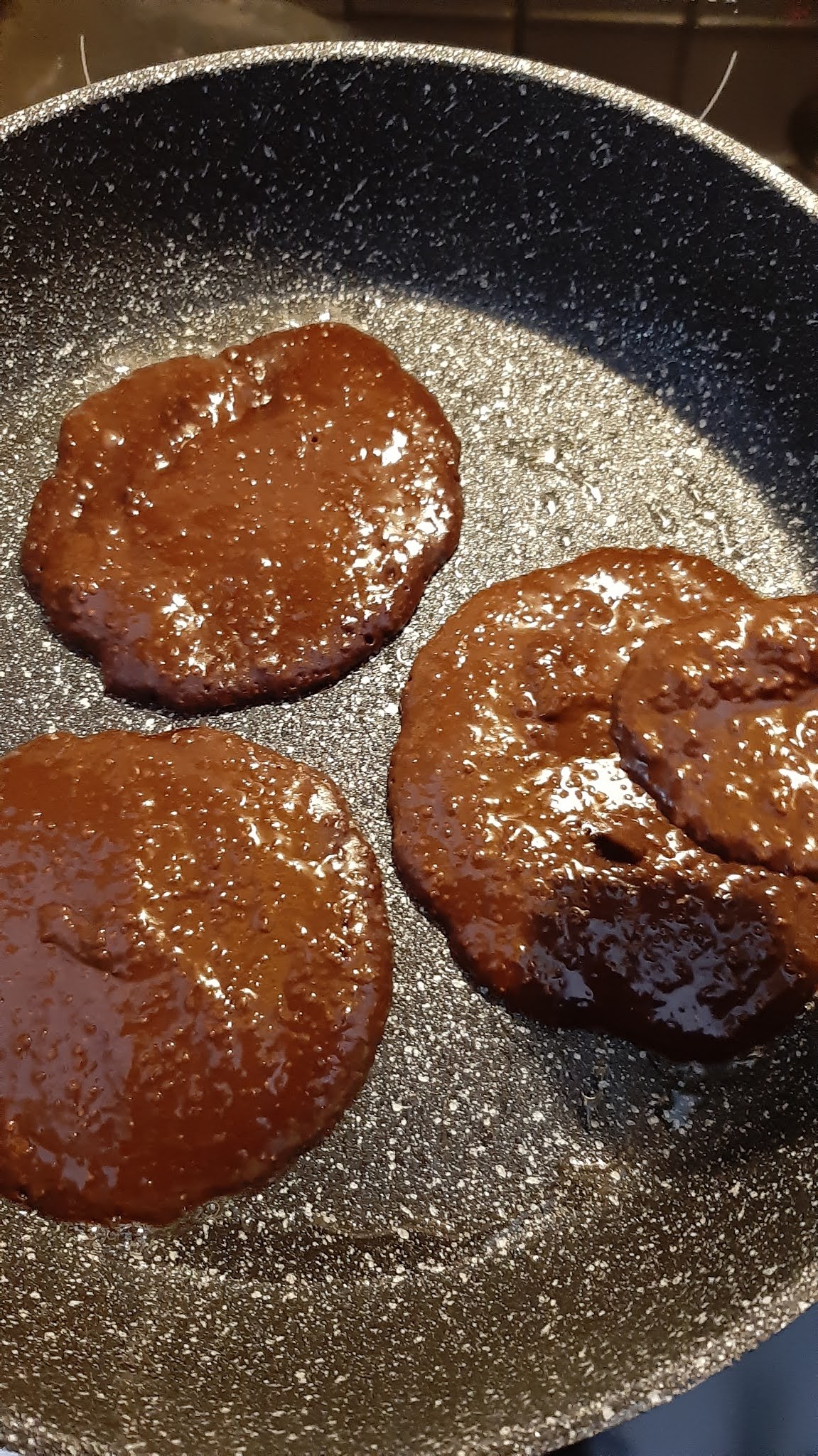 - Загрях и сипвах по 2 с. л. за всяка палачинка, като дооформях с обратната страна на лъжицата.