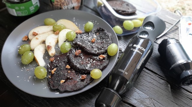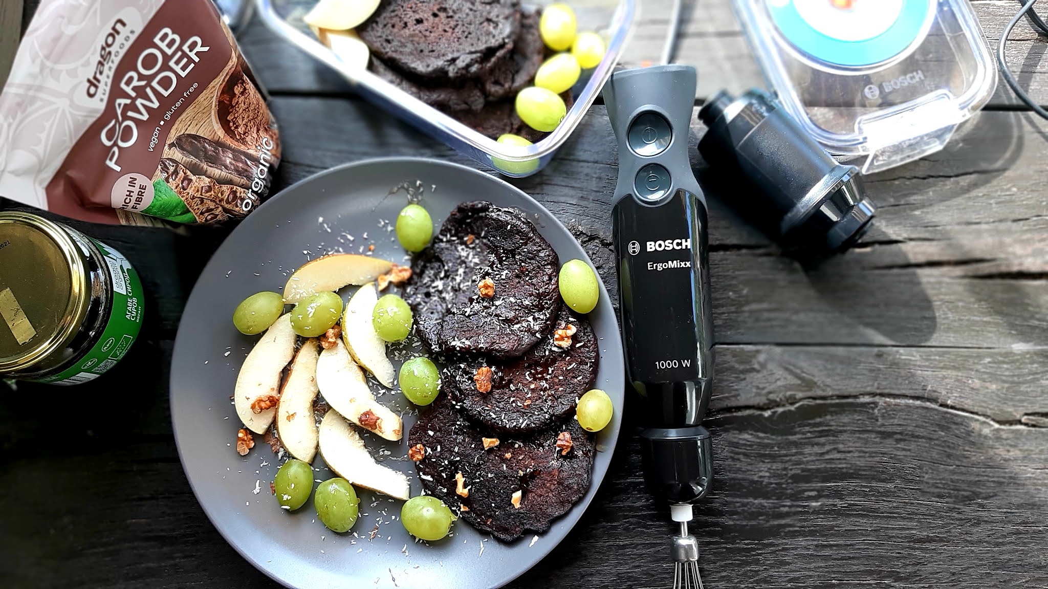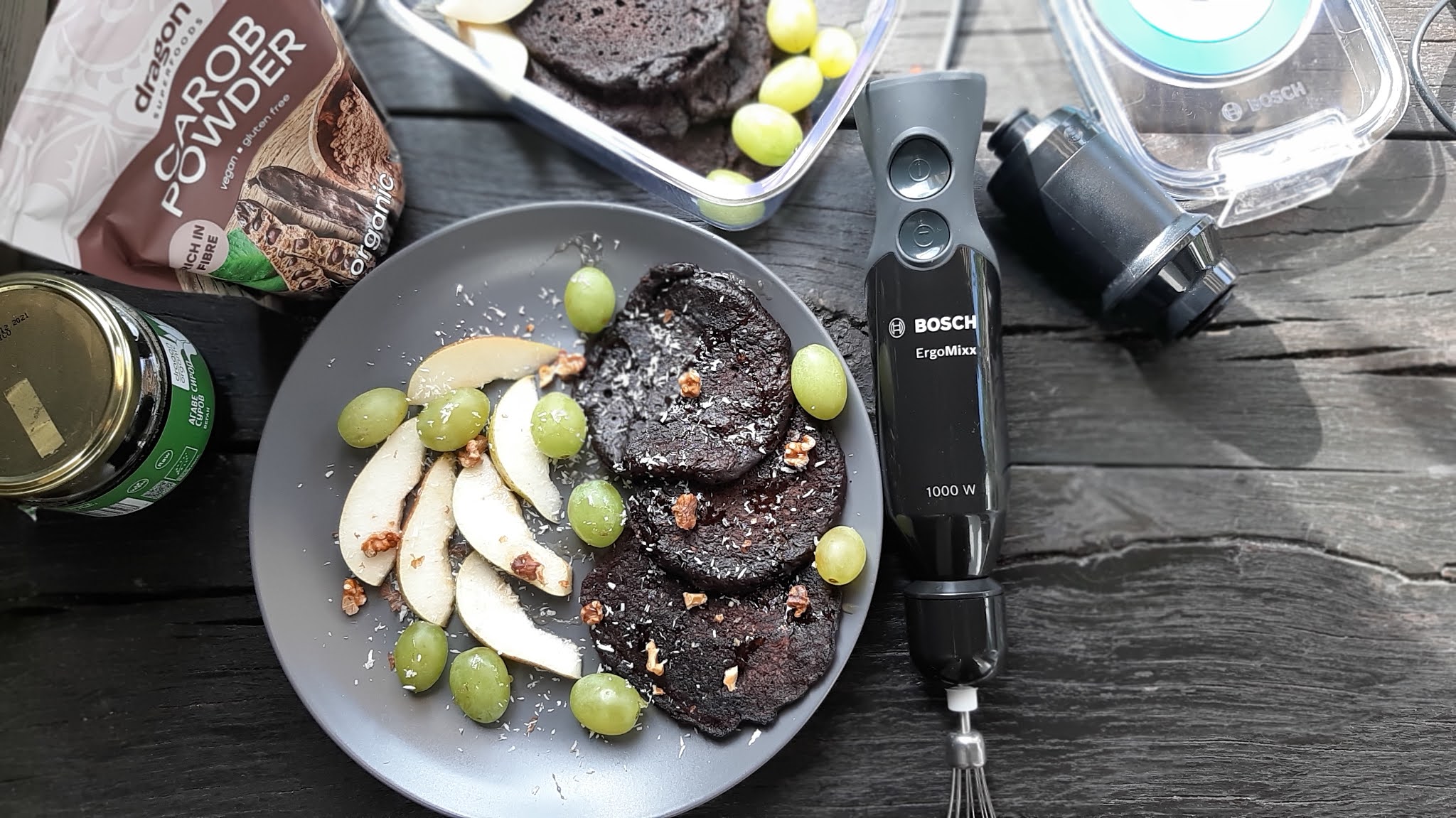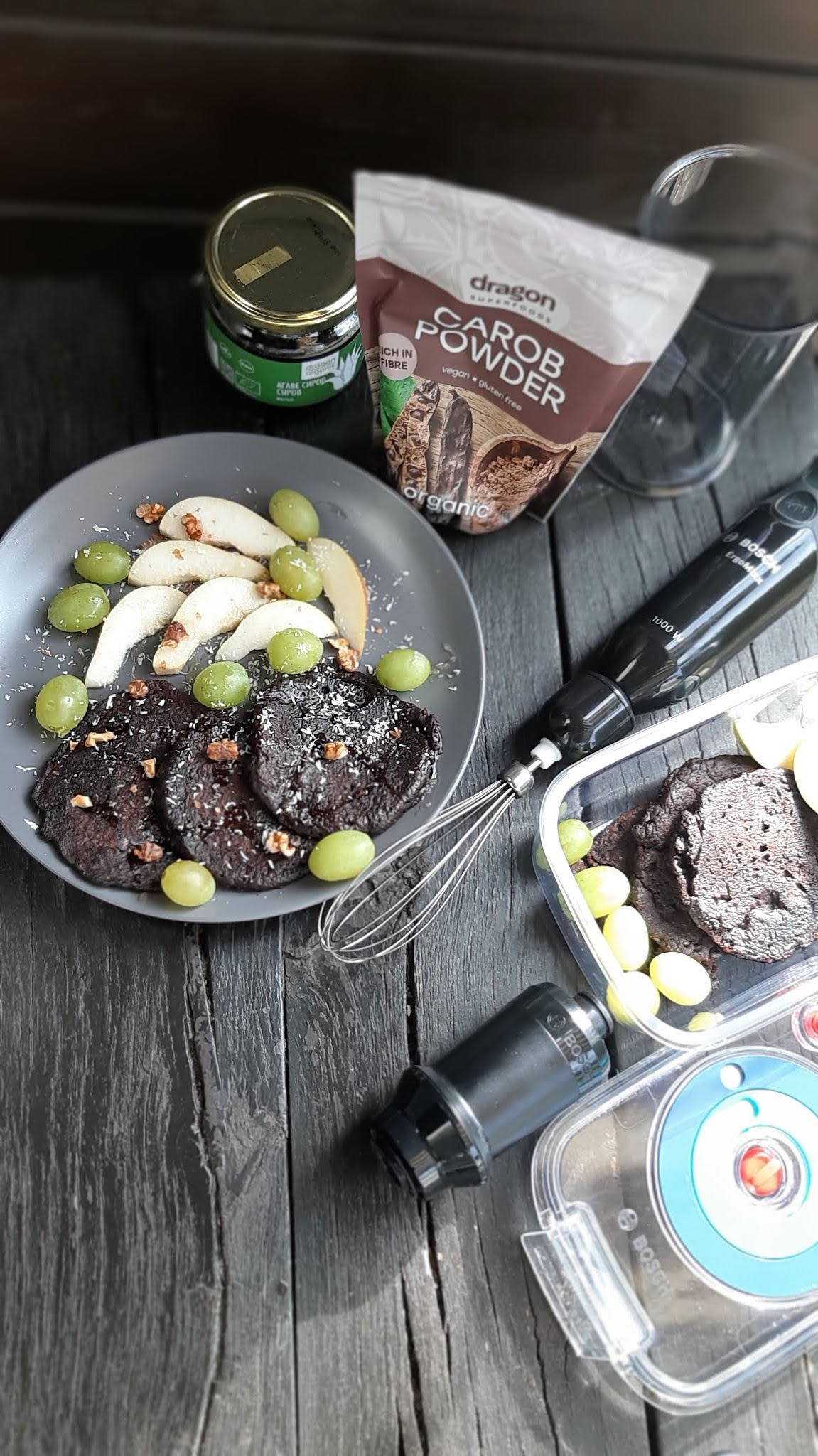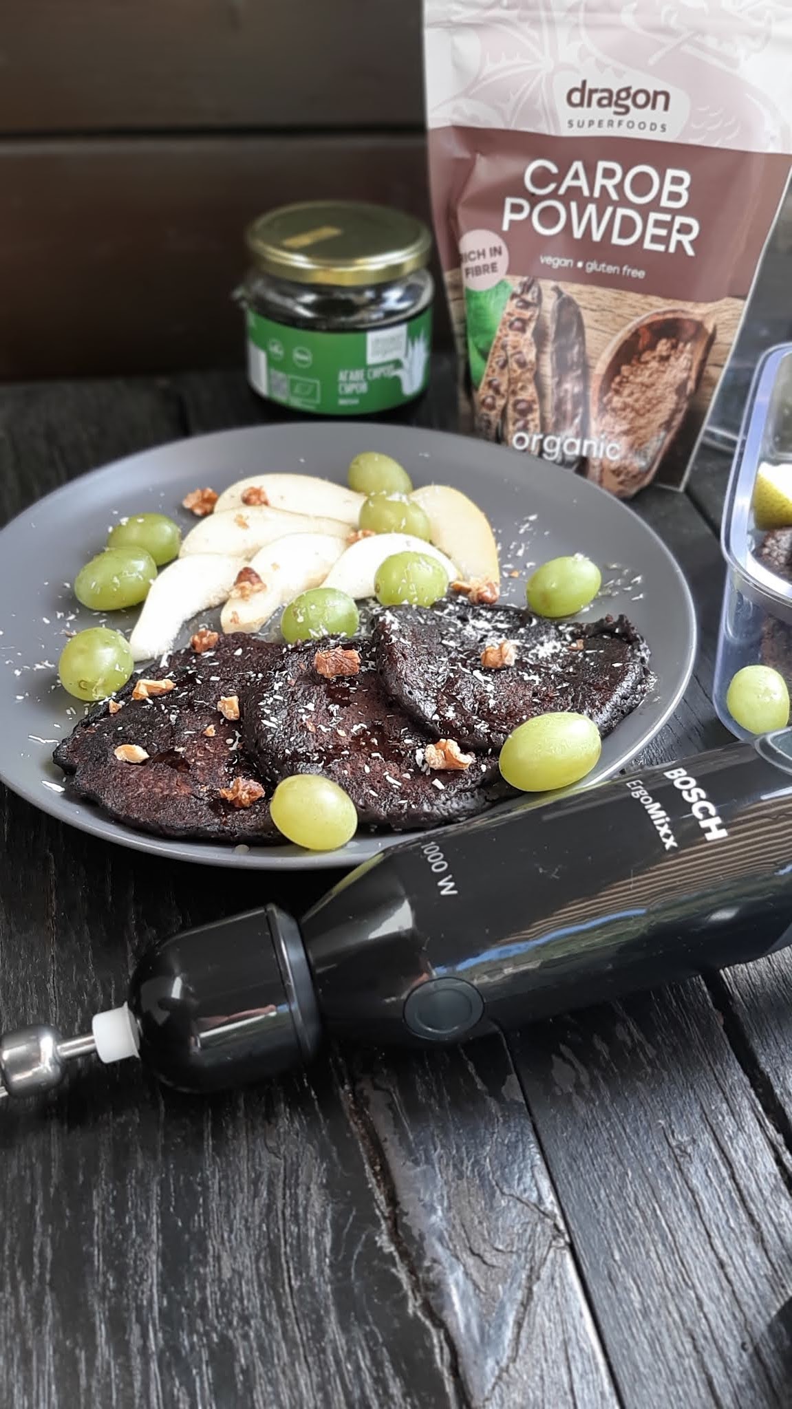 Аз реших да добавя рожков и агаве в неделните палачинки. Получи се невероятно вкусна закуска и в съчетание с плодовете беше просто една експлозия от вкусове.