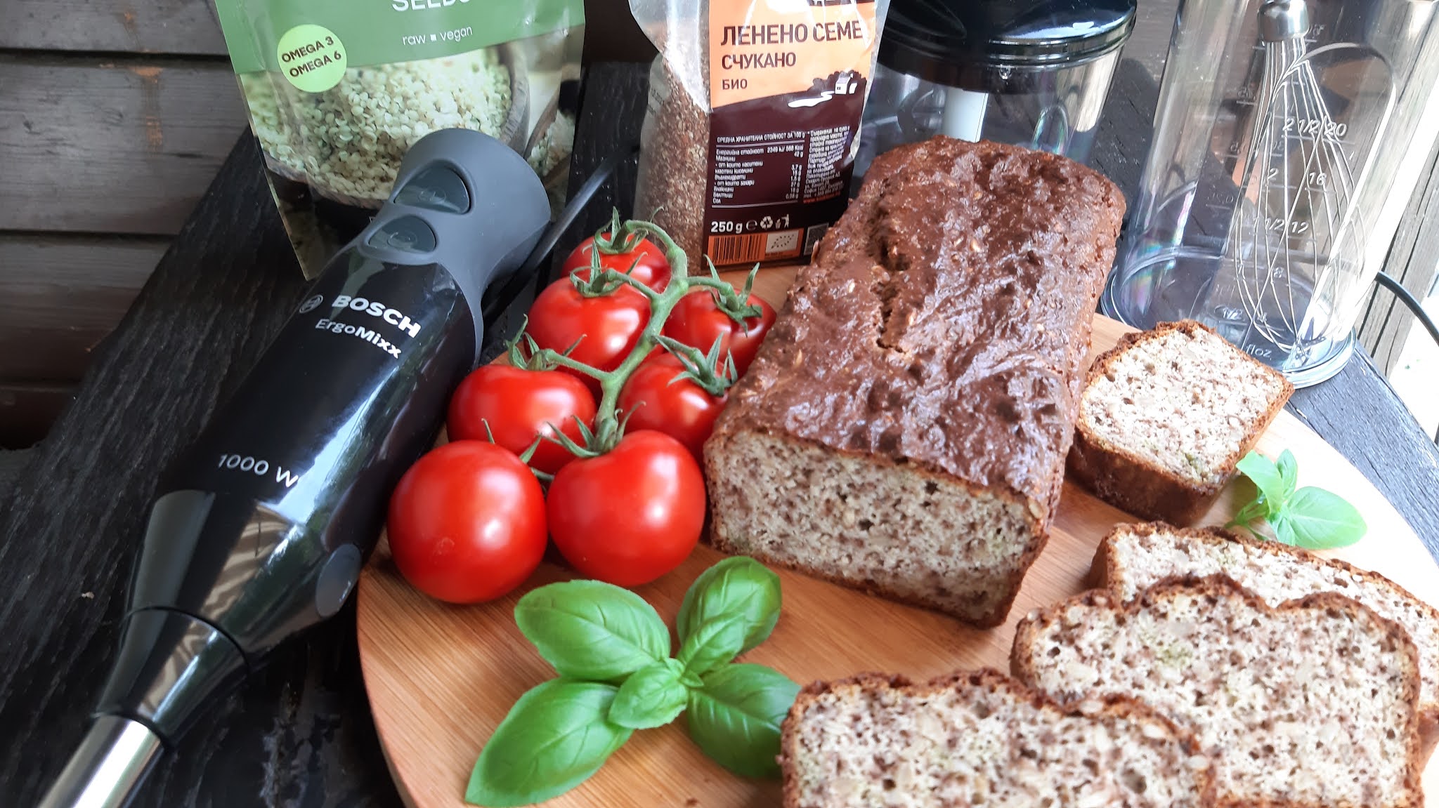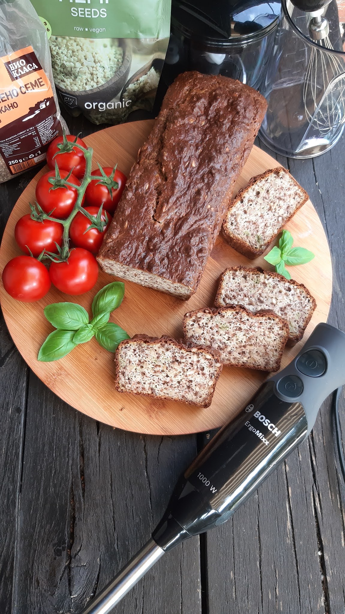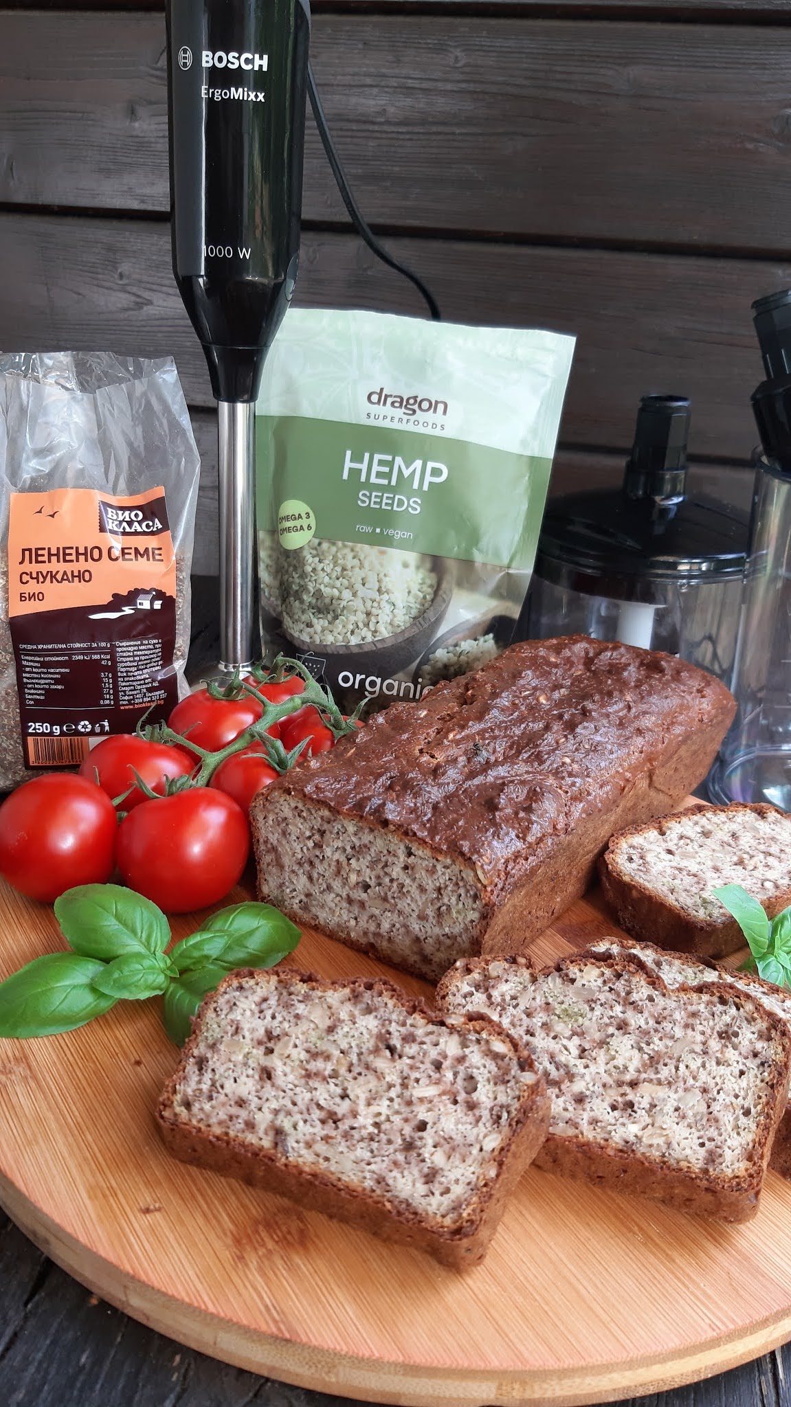 Моето предложение днес е здравословен хляб с конопено семе , ленено семе и още много полезни съставки. Хлебчето се приготвя лесно, особено с помощта на BOSCH ErgoMixx.