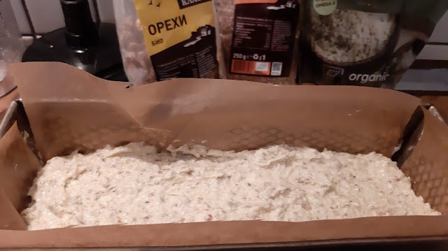 - Формата за кекс облякох с хартия за печене, а фурната загрях до 160 градуса с вентилатор или 180 градуса с горен и долен реотан.