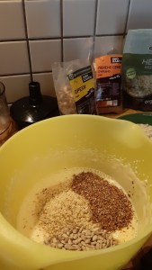 Аз съчетах брашното от конопено семе със слънчогледово семе, ленено семе, орехови ядки и немската подправка за хляб. Тя даде допълнителен аромат на хлебчето.