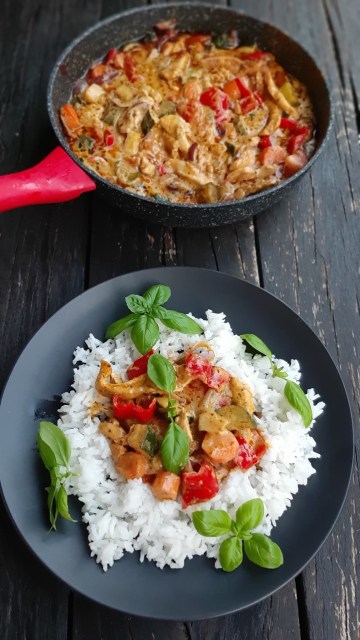 Много лесно можем да разнообразим менюто на семейството си с тази рецепта. Нужно е само да си намерим готова паста ЗЕЛЕНО КЪРИ. Продава се във всички големи супермаркети на рафтовете с азиатски продукти. Зеленото къри е специфично за тайландската кухня.