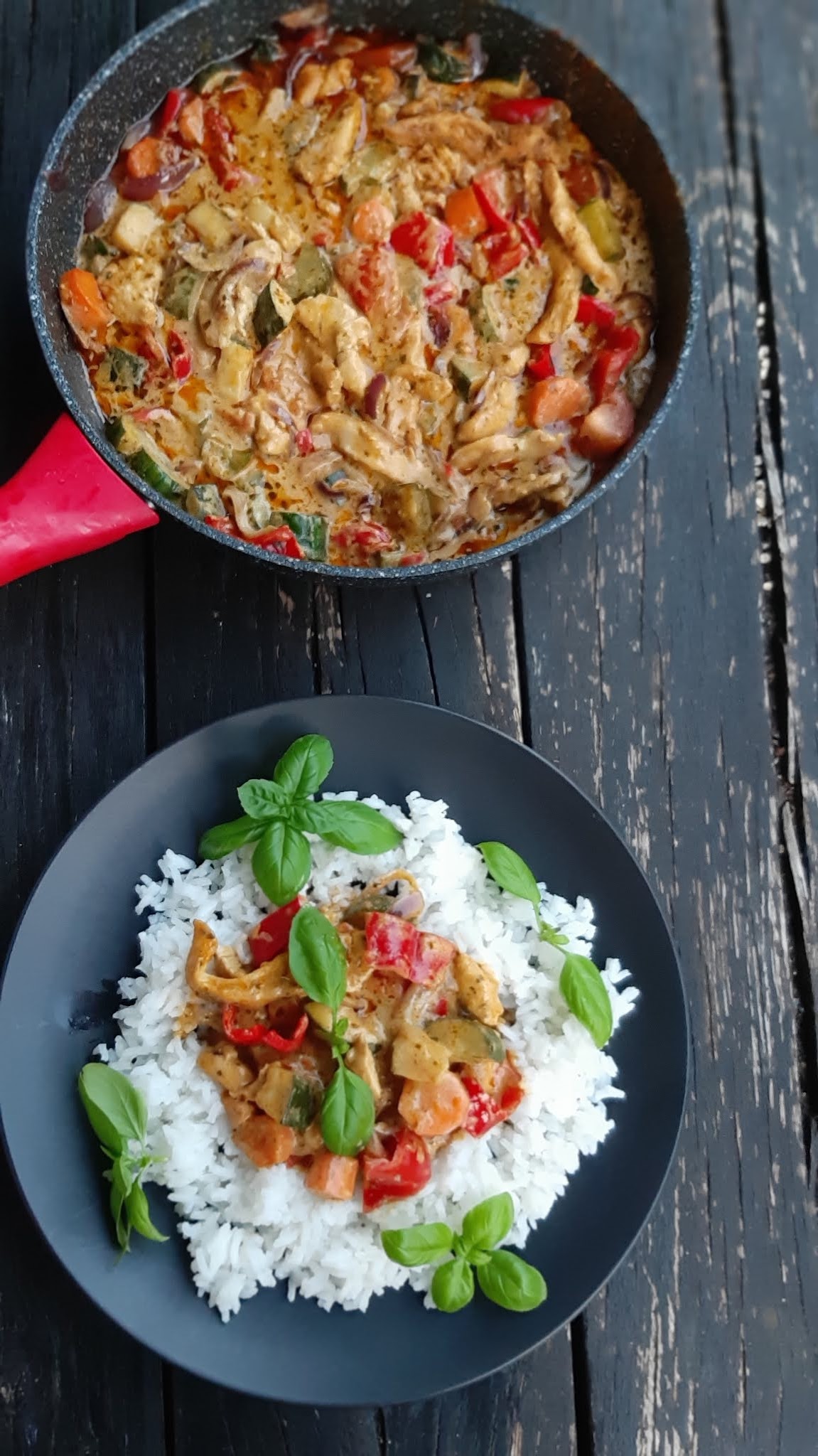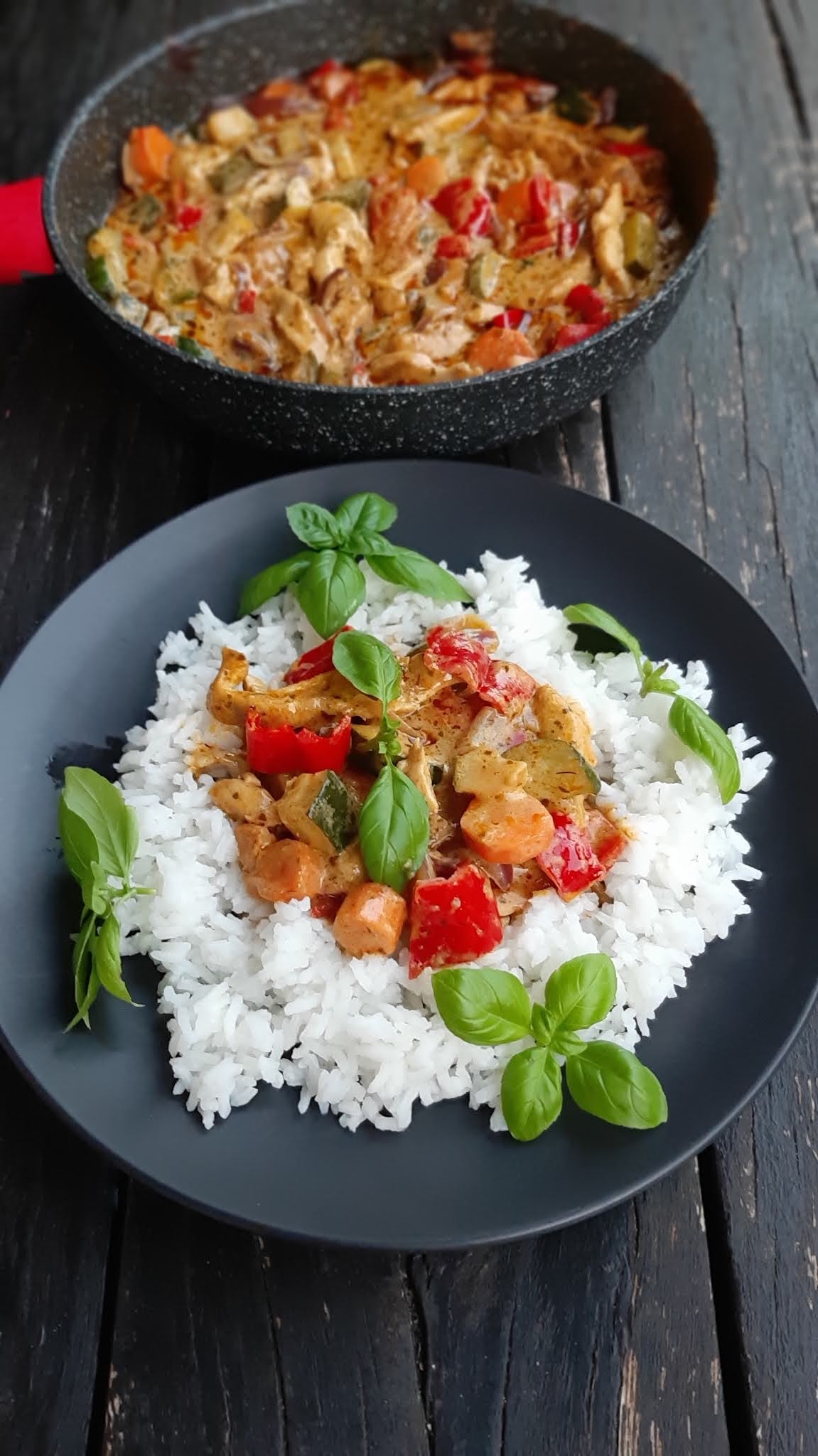 Много лесно можем да разнообразим менюто на семейството си с тази рецепта. Нужно е само да си намерим готова паста ЗЕЛЕНО КЪРИ. Продава се във всички големи супермаркети на рафтовете с азиатски продукти. Зеленото къри е специфично за тайландската кухня.