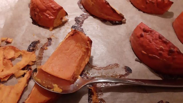 - Слагам тавата и пека тиквата около 30 минути. За това време тя омеква.