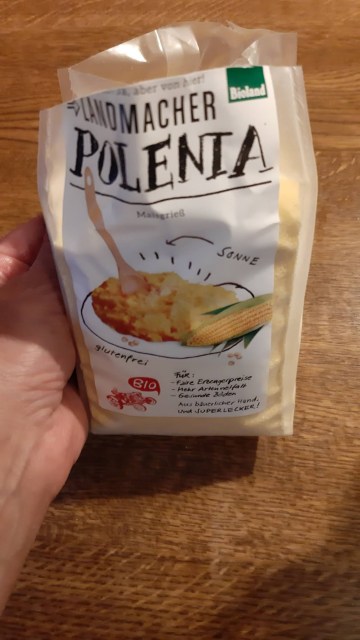 - Това е полентата, която аз използвах, но и българския царевичен грис става идеално. Все са от царевица.
