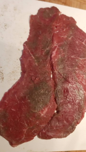 - Месото измих и много добре подсуших. Ако Ви се стори, че е малко по-дебело, начукайте, за да получите огромни и тънки филии.