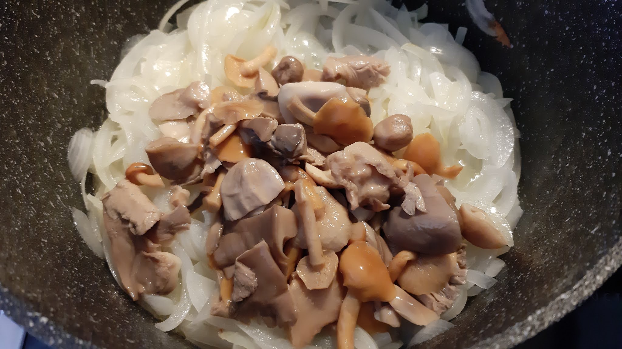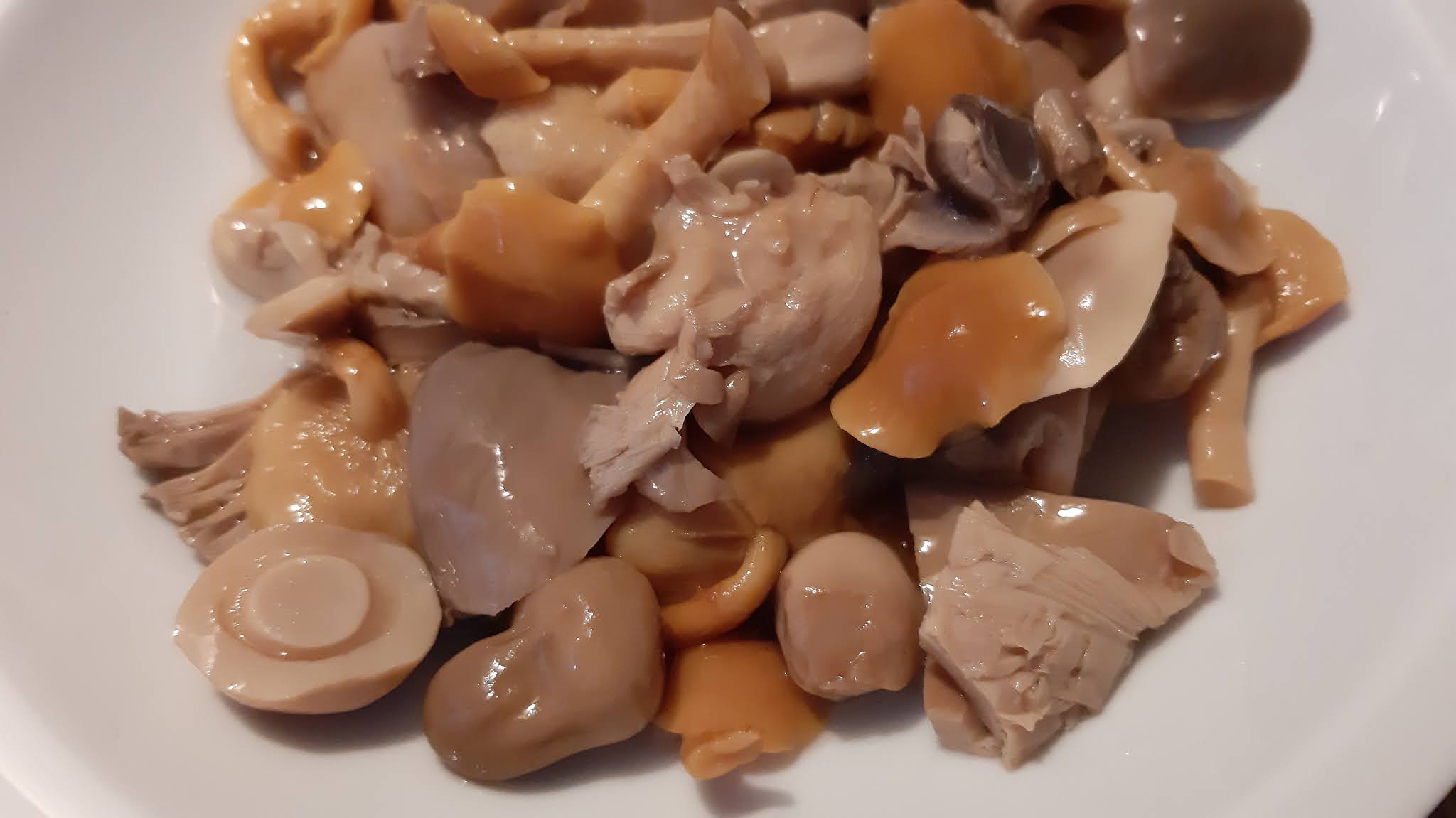 около 500 гр различни гъби (аз нямах възможността да си набера, защото ме е страх. В магазините нямаше голям избор, но пък си купих консервирани – печурка, челадинка, пачи крак, шитаке и кладница и други)