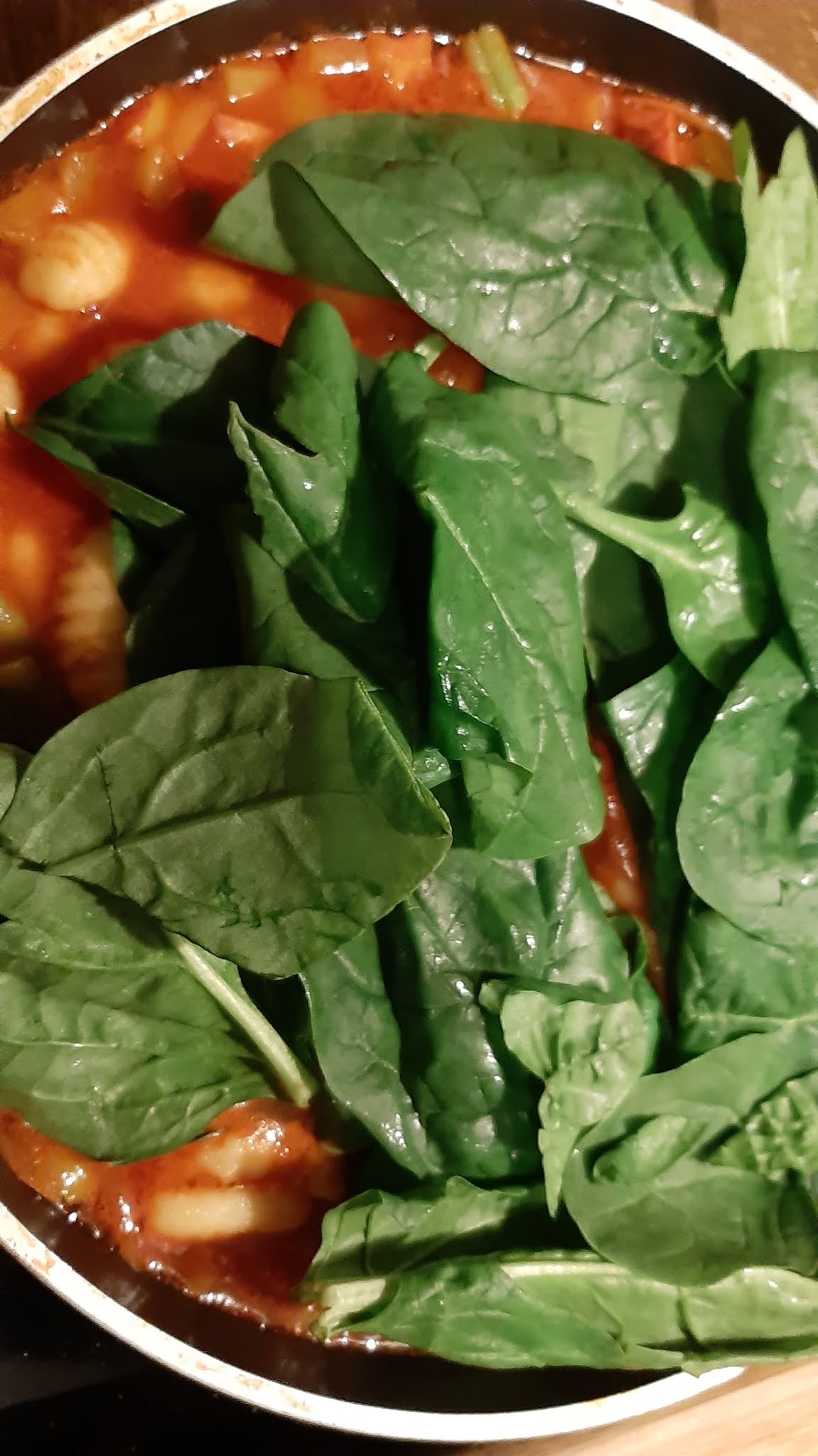 - За да добавя най-накрая спанака. Тоя няма нужда от много готвене. Аз искам да остане зелен на цвят.