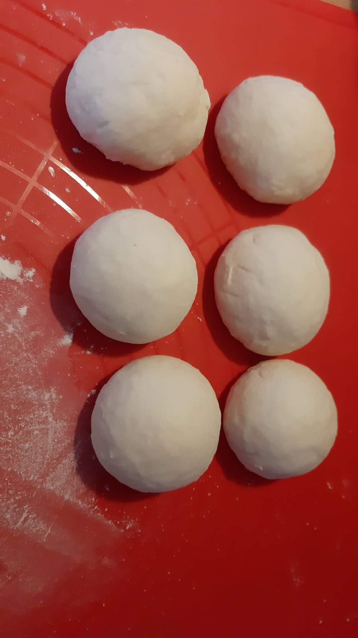 - Разделих тестото на 6 еднакви части, които офомих на хубави топки.