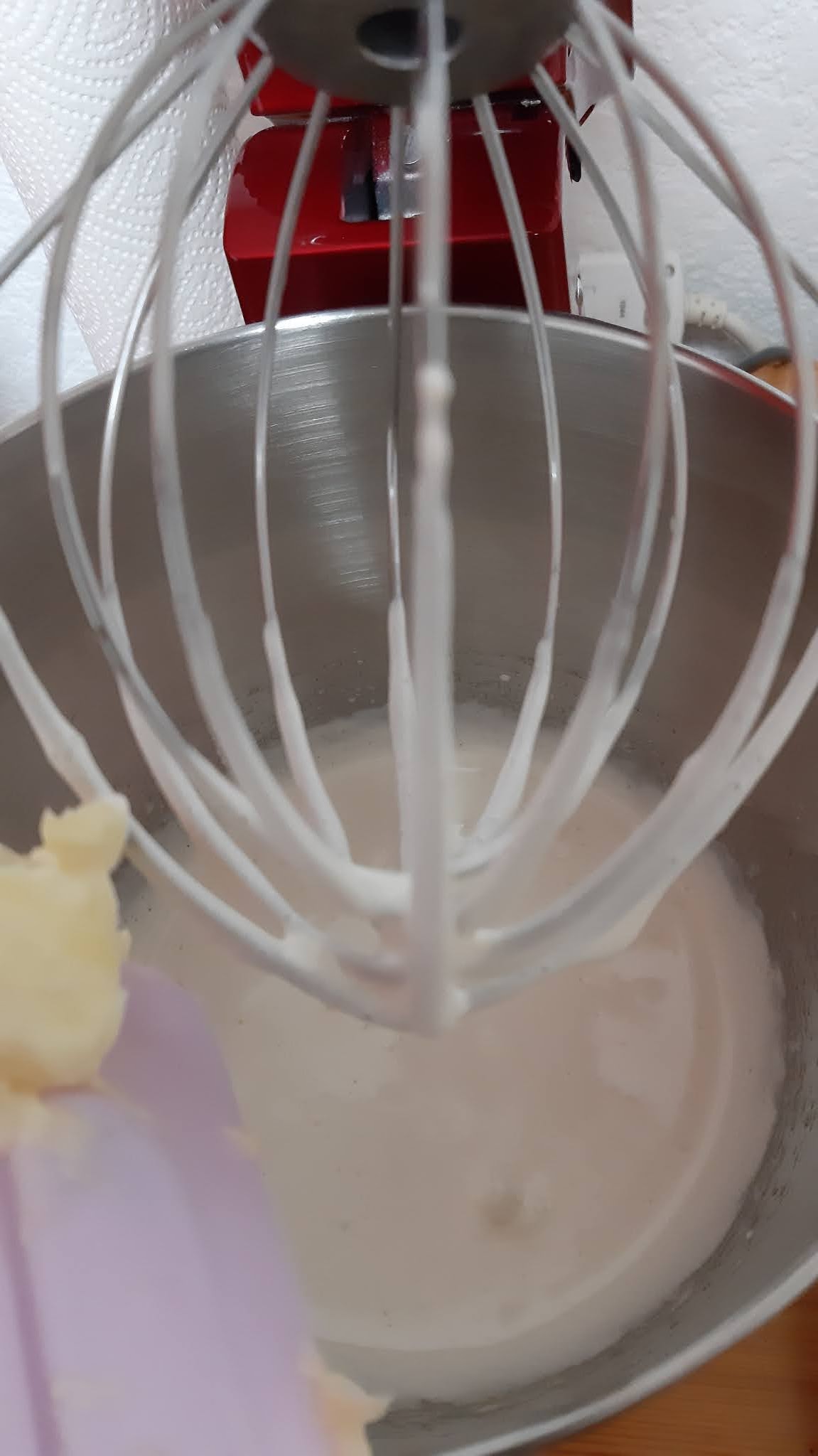 • Сега започнах да добавям от мекото масло по малко и да разбивам, ама на ниска степен.