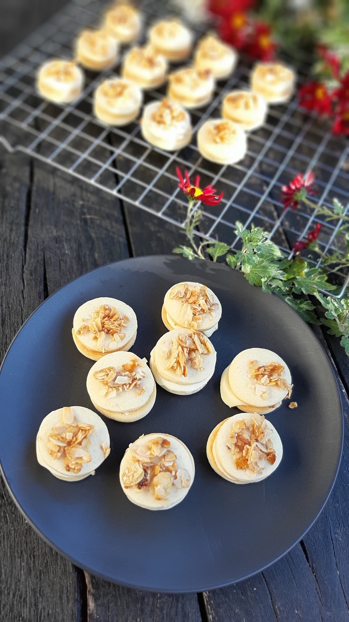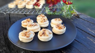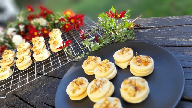 • Охлаждам сладките на решетка и чак тогава слепям с крема. Важното е кремът да не етечен. За целта го разбивам с миксер до пухкав.