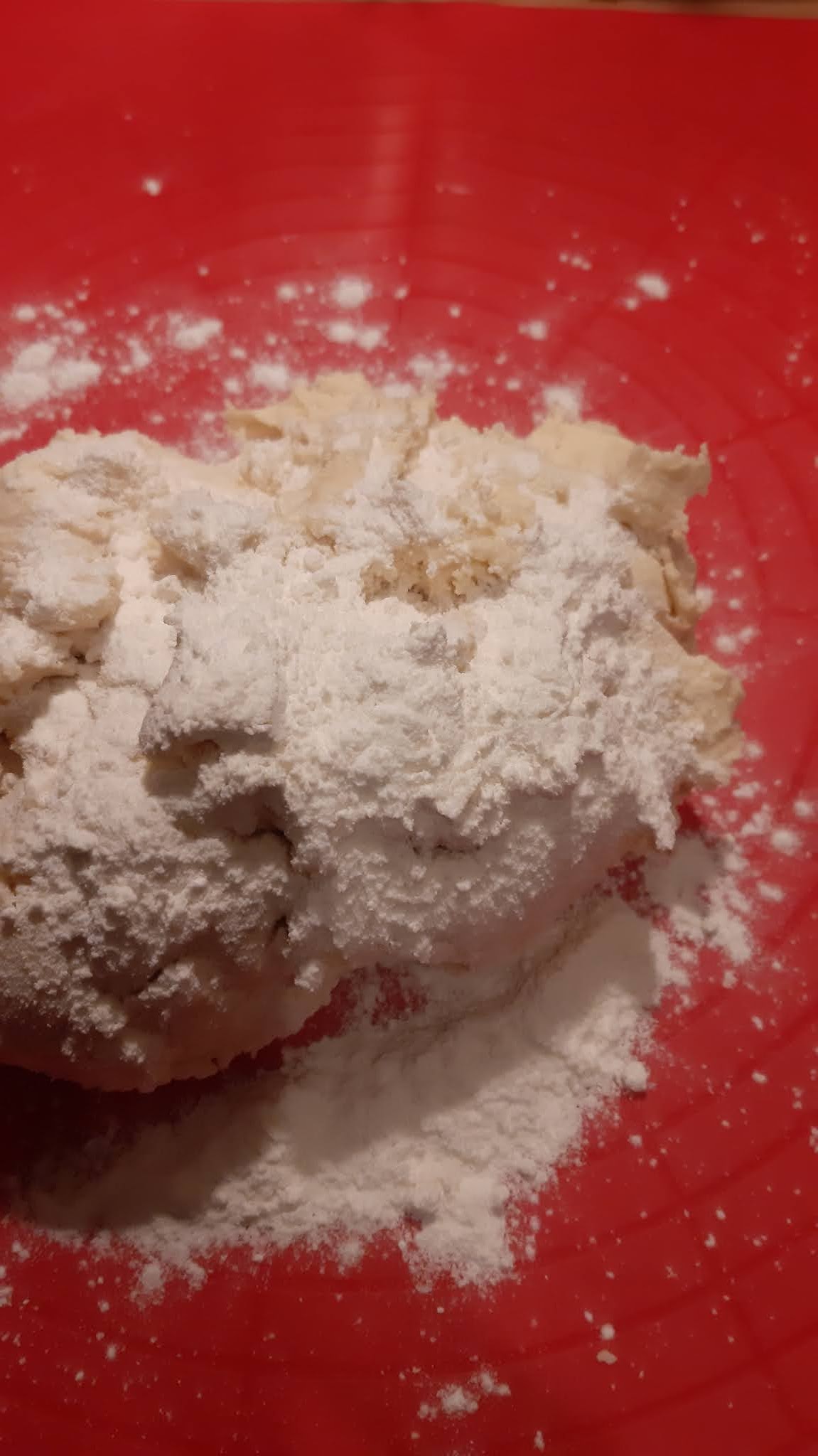 • Готовото тесто доомесих на ръка.