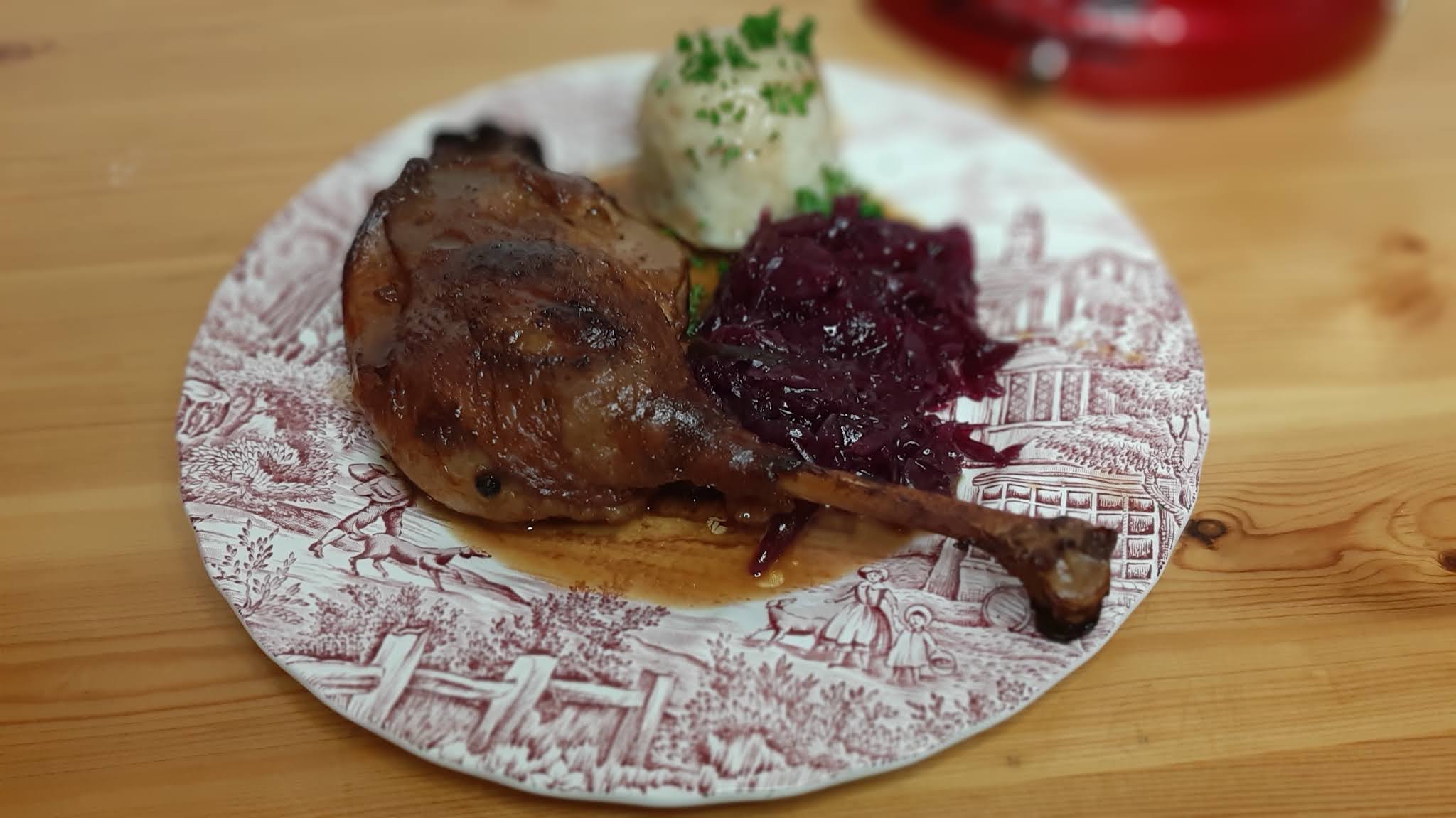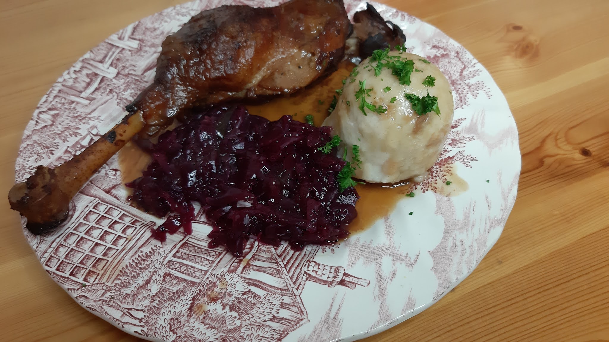 - Сервирам гъшите бутчета с червено зеле и кнедли. А щом има кнедли, трябва да има вкусен сос.