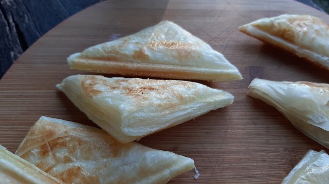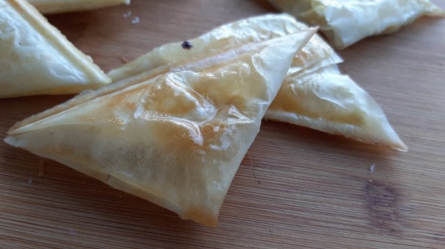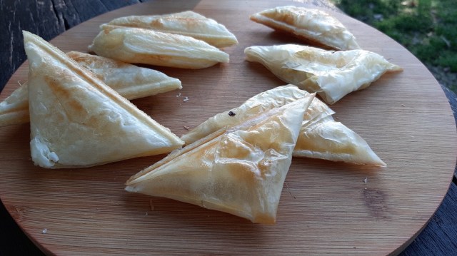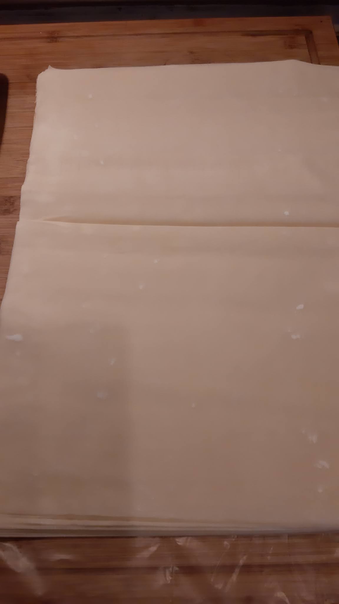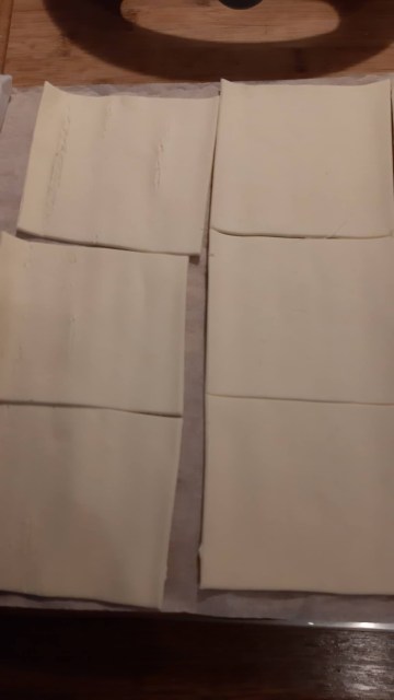 - За целта от половин тесто нарязах 6 квадрата, които бяха горе – долу с размера на машинката.