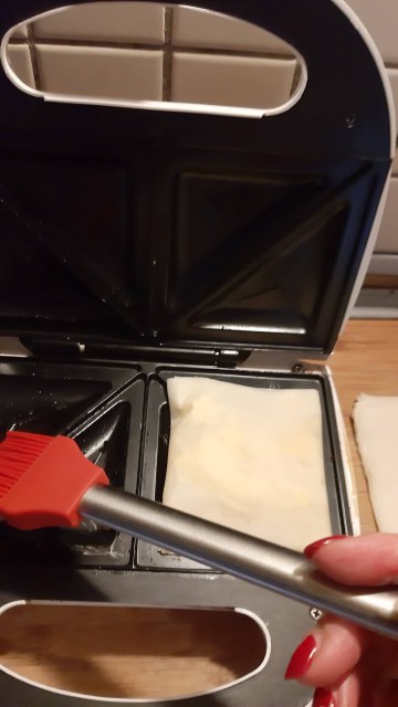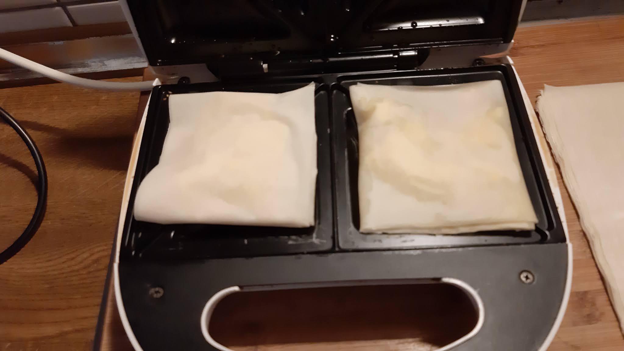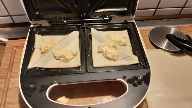 Още преди месеци гледах по обедното предване на немската телевизия ARD Büffet как работят с този Scndwichmaker. Някои от предложенията бяха с кори за баница и бутер тесто. Ествествено те не ги нарекоха БАНИЦА, но пък аз вече бях решила, че при първа възможност ще направя банички на тази машинка.