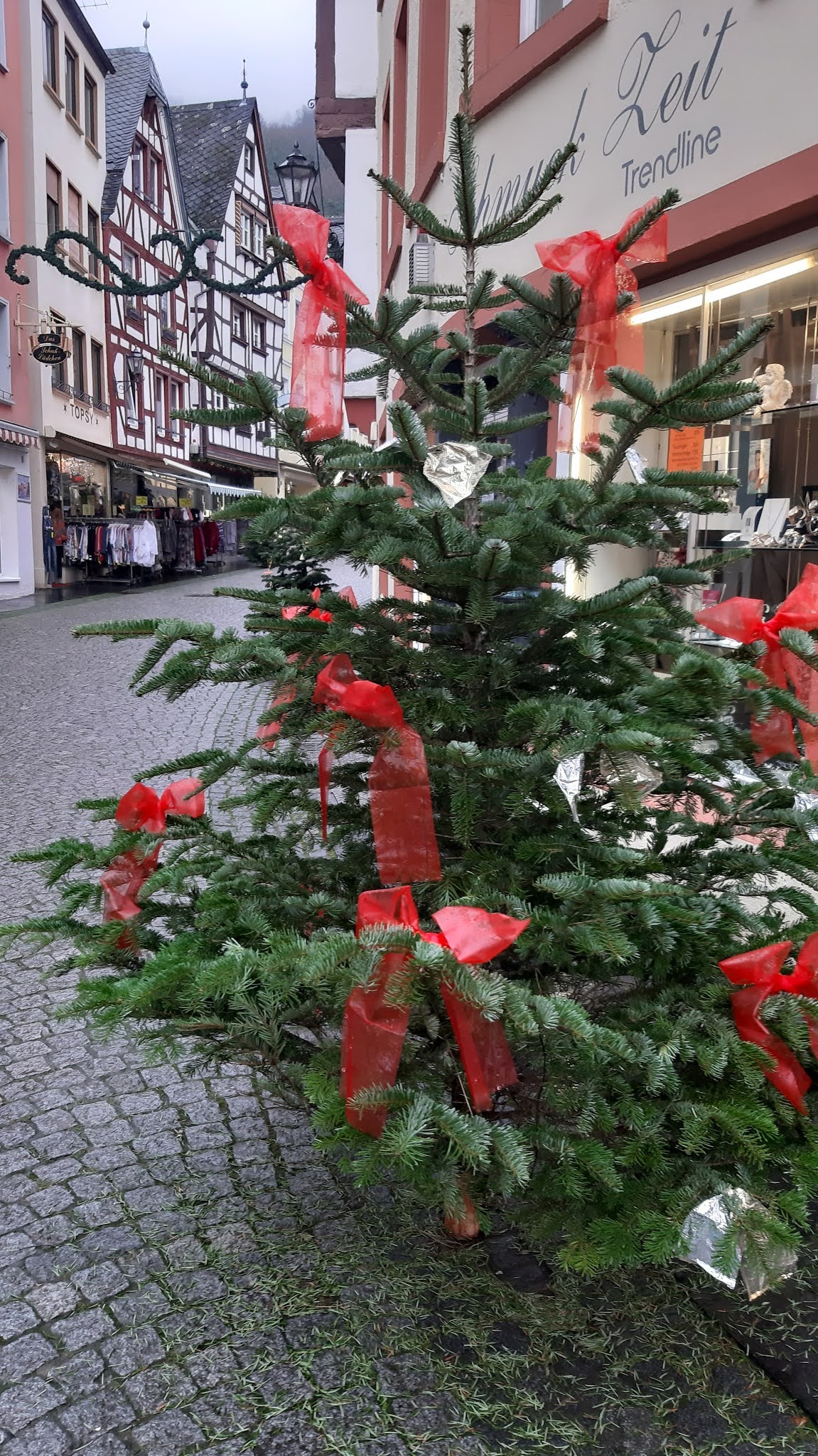 Днес съм коледно настроена и ще Ви покажа снимки от Коледен Бернкастел, където тази година къщичките с коледни лакомства и сувенири са заменени с къщички – витрини. Причината за това е известна на всички ни. Ковид. Лошият вирус, който промени живота на всички ни.