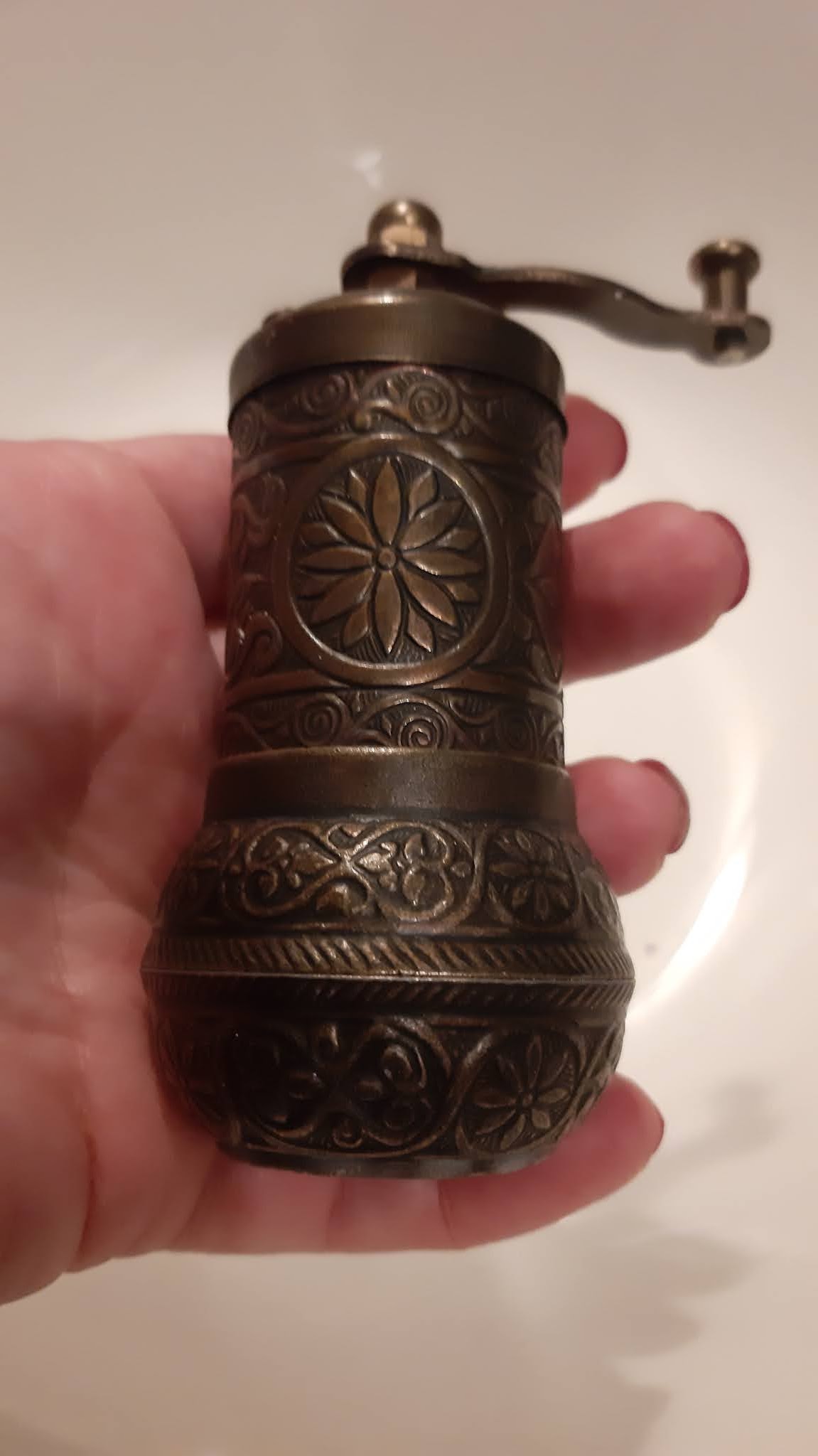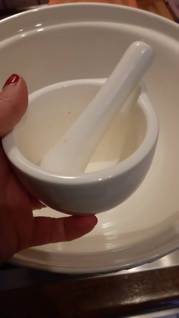 - 3 карамфилчета е нужно да бъдат смлени. За целта съм си купила от арабските магазинчета на улица Симеон в София ето тази мини-мелничка. Върши идеална работа.