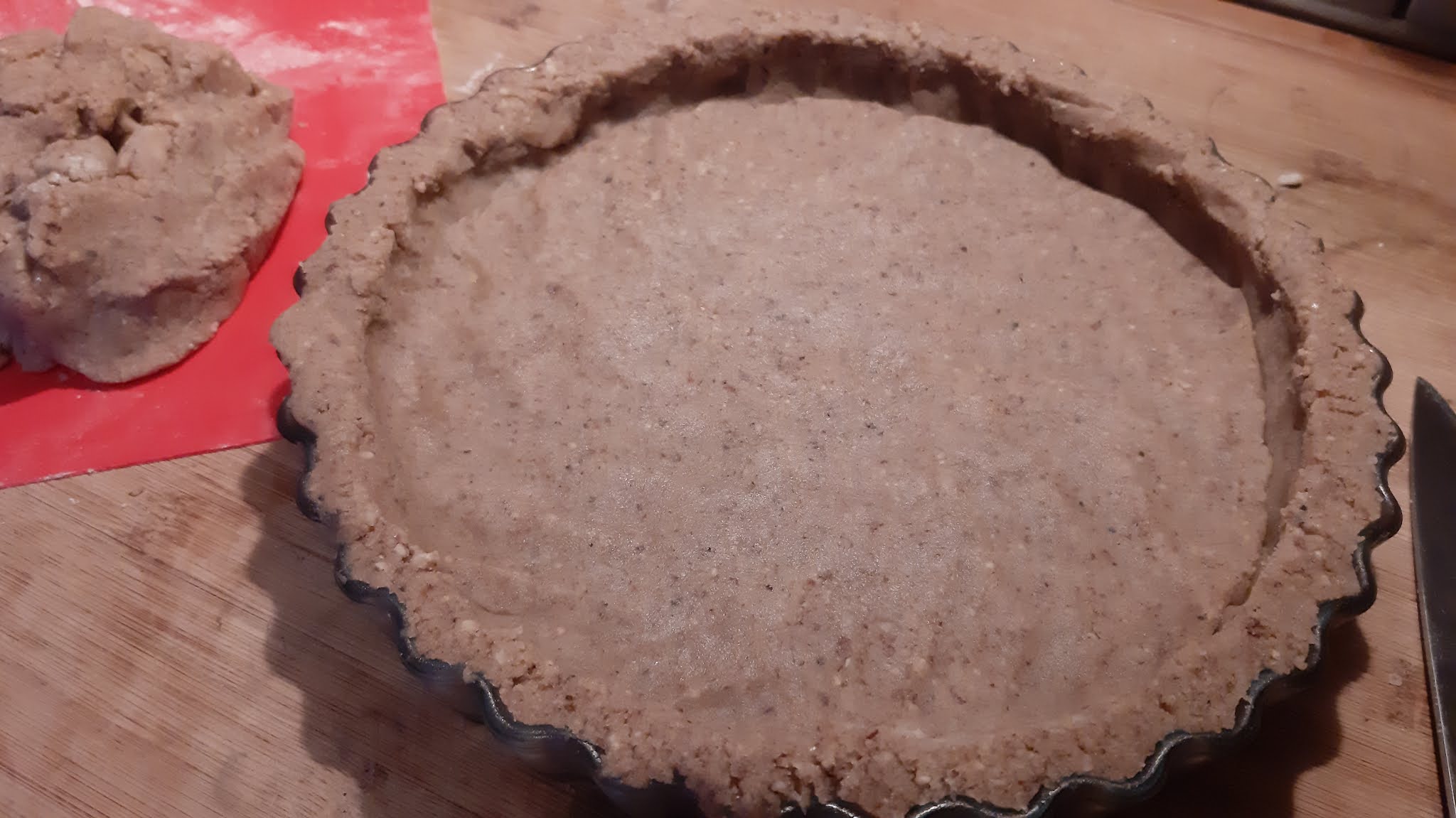 - Притискам тестото хубаво по дъното и стените на формата.
