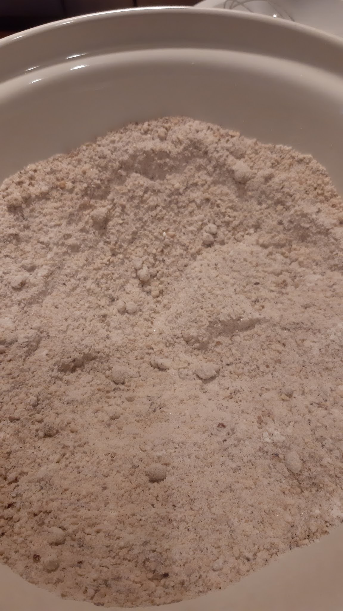 - В купа смесвам брашното, захарта, бадемите, настърганата кора на лимона, ванилията (ако е шушулка я остъргвам с нож) настъргания джинджифил, смляният карамфил и канелата.