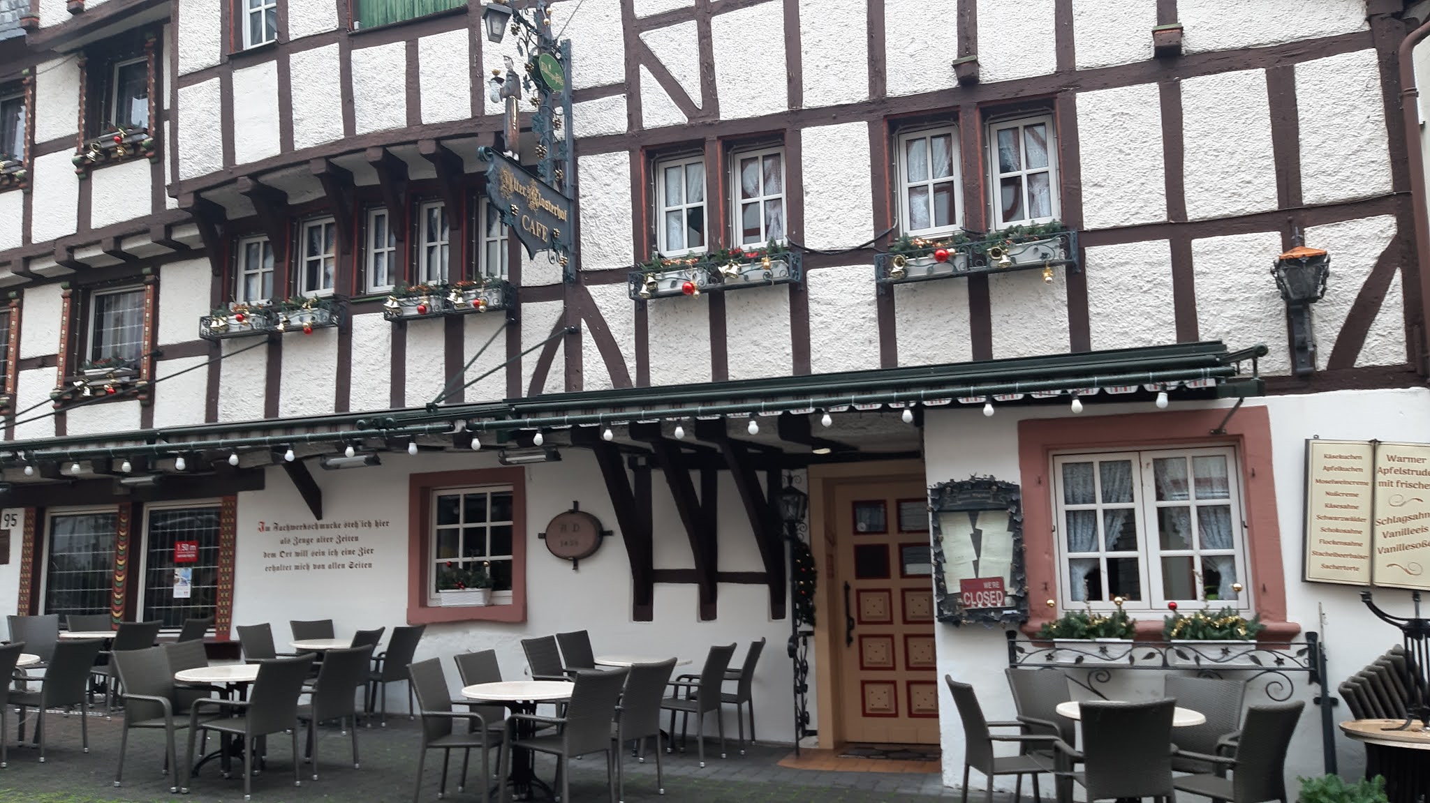 Изпращам Ви коледен поздрав от един от старите градове на Германия. Бернкастел ми е любима дестинация, заради кривите си къщи от 12 век. Върху всяка къща има изписани поговорки и мисли на старонемски.