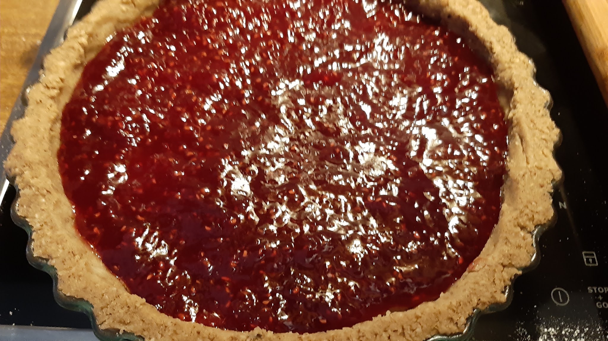- Изчаквам кратко време да се поохлади, за да не разтопи тестото и изливам върху тестото.