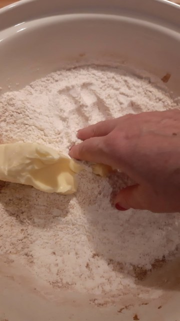 - Накра малко по малко добавям водата, като си топя ръцете. Така успявам да събера тестото на топка.